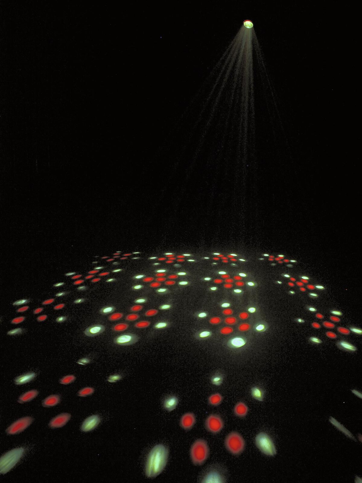 Der kompakte LED FE-19 Flower Effect von Eurolite erzeugt beeindruckende, raumfüllende Flower-Effekte in Wohnzimmern, Home-Party-Räumen, kleineren Clubs und mehr – vollautomatisch dank einfach zu handhabendem Plug & Play-Betrieb. Tongesteuert Modus ändern die mehrfarbigen Blumenstrahlen mit jedem Bassschlag ihre Richtung. Die Empfindlichkeit des integrierten Mikrofons lässt sich per Drehregler einstellen. Der LED FE-19 ist mit 18 hellen LEDs in den Farben Rot, Grün und Blau sowie einer Montagehalterung ausgestattet.