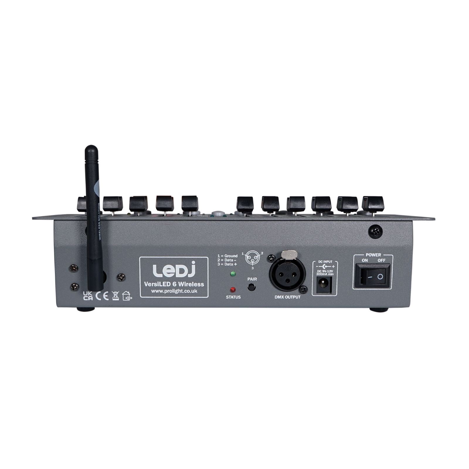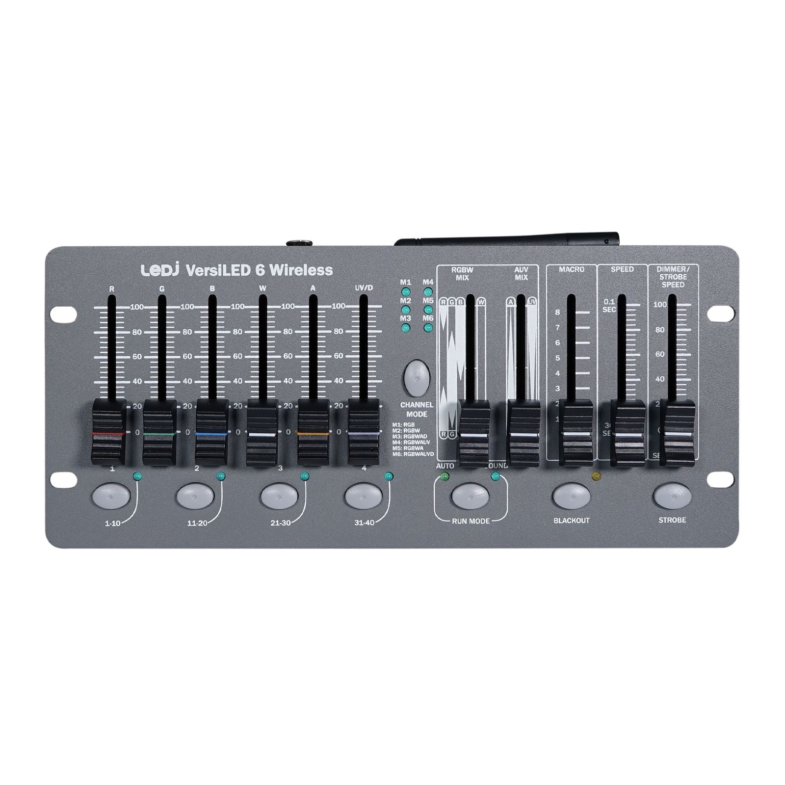 Der VersiLED 6 Wireless von LEDJ ist ein universeller DMX-Controller zur Steuerung mehrfarbiger LED-Leuchten. Geeignet für die Verwendung mit RGB-, RGBW/RGBA-, RGBWA- oder RGBWAUV-Produkten, mit oder ohne Dimmerkanäle. Der Controller kann für LED-Par-Leuchten, Panels oder sogar LED-Streifenlichter verwendet werden. Der integrierte W-DMX-Sender ermöglicht eine drahtlose DMX-Steuerung.