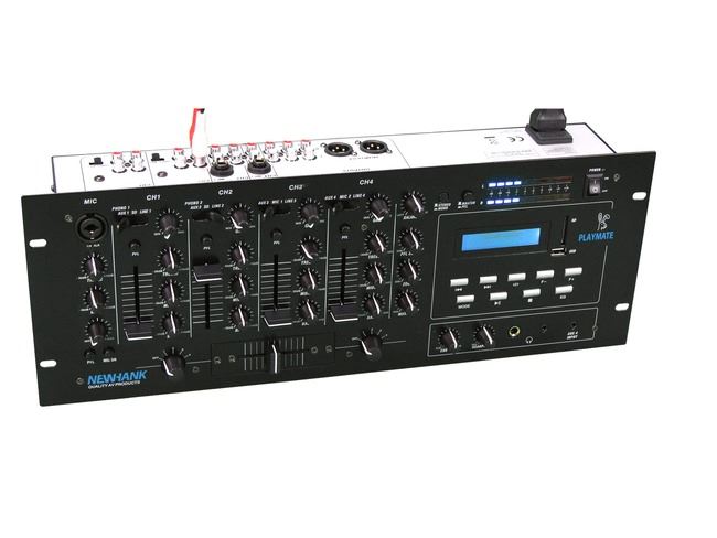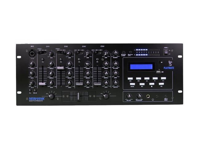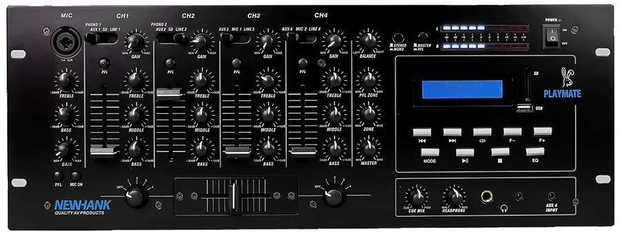 Suchen Sie einen sehr vielseitigen Mediaplayer und Mixer? Lernen Sie den NEUEN NewHanK PLAYMATE professionellen 4HE 19″ Stereo-Rack-Mixer und Mediaplayer kennen. Der PLAYMATE bietet Ihnen umfassende Kontrolle über Ihre Eingangskanäle und ermöglicht den Anschluss von Musikquellen wie Satelliten- und Kabeltunern, CD-Playern, anderen Arten von Playern oder Mixern, Plattenspielern, Mikrofonen usw. Die Anschlüsse befinden sich oben – denken Sie also bitte bei der Planung Ihres Racks daran. Wenn Sie Anschlüsse auf der Rückseite benötigen, schauen Sie sich bitte den NEUEN WORKMATE an.