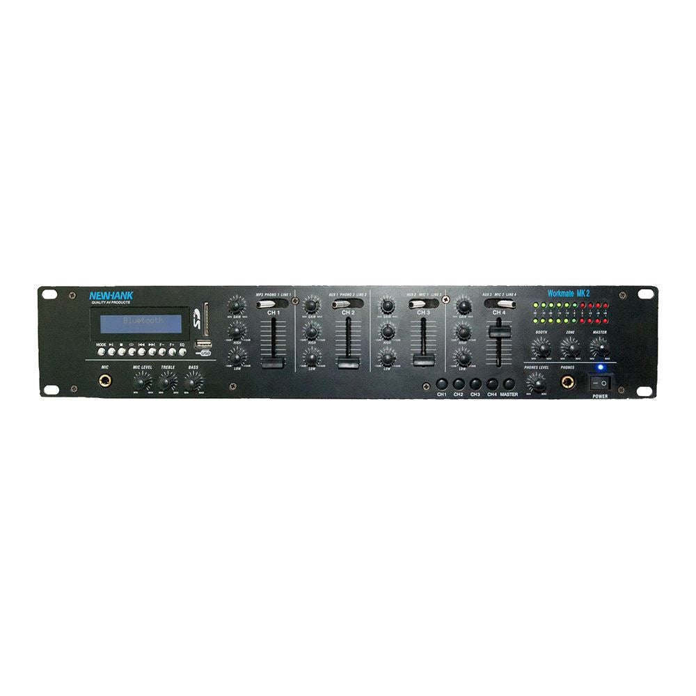 Schauen Sie sich diesen NEUEN NewHank WORKMATE MK2 an, einen kompletten Stereomixer/Vorverstärker und intelligenten Mediaplayer in einem kompakten Paket. Der WORKMATE MK2 benötigt nur 2HE Platz im Rack und ist somit einfach zu installieren. Es bietet Ihnen maximale Kontrolle über Ihre Musikquellen, wie Satelliten- und Kabelgeräte, CD-Player oder andere Arten von Playern oder Mixern, Plattenspielern (2 Telefonvorverstärker verfügbar), Mikrofone usw.