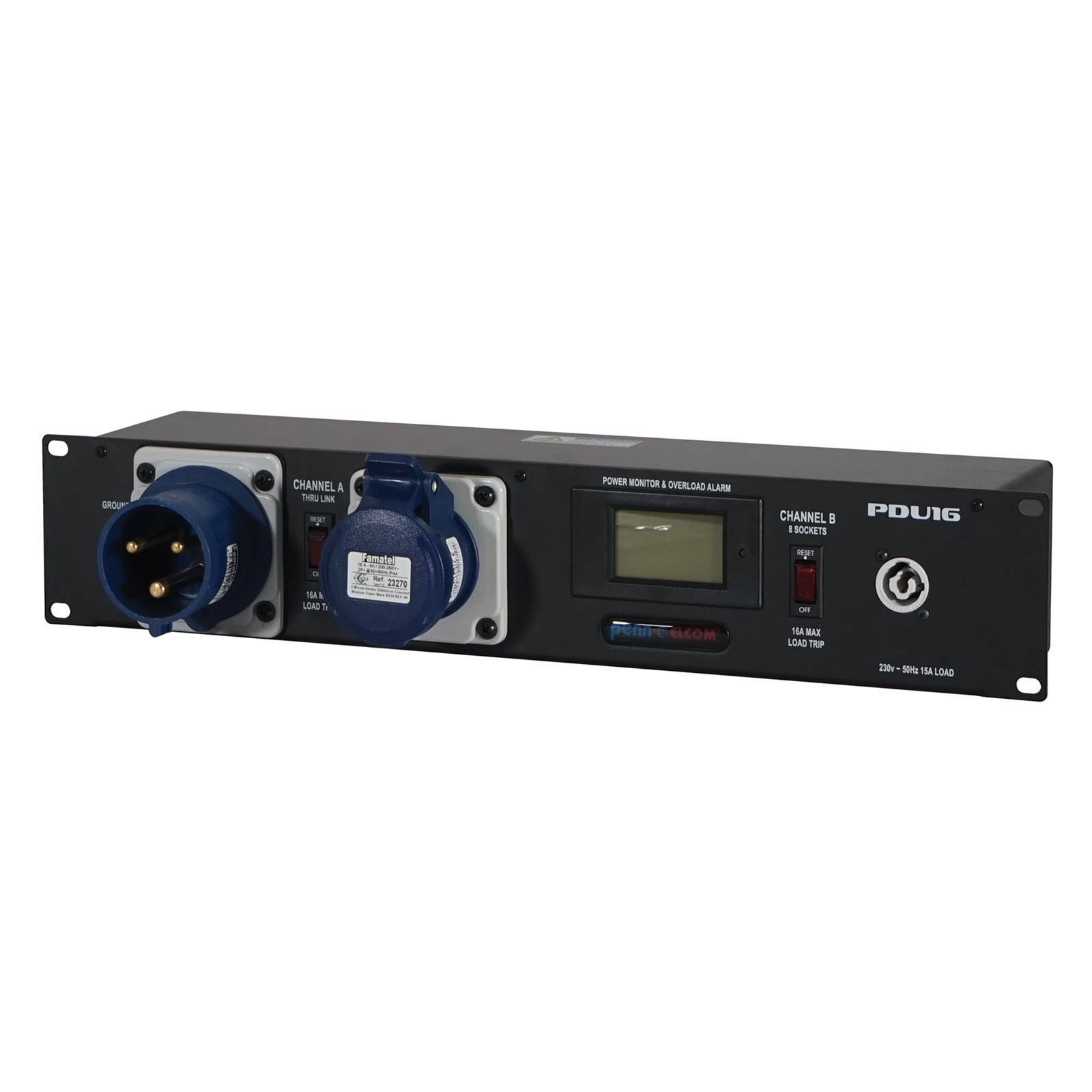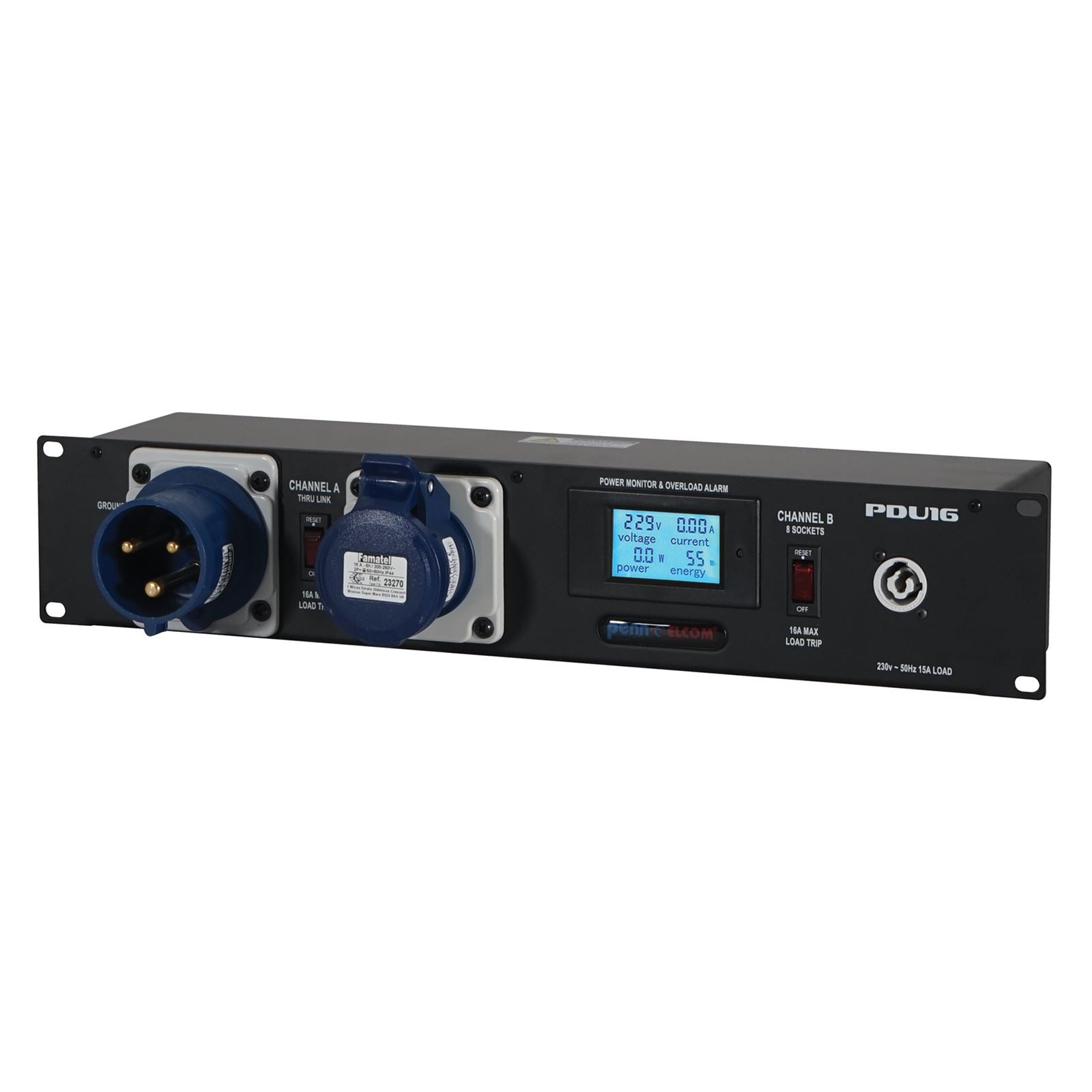 2U 32A AC rack mount PDU With 8 x Neutrik powerCON sockets, overload protection and power monitoring. 2U high horizontal mounting unit designed to provide versatile hook-up for the distribution of AC power within multimedia, theatre and touring rack applications.