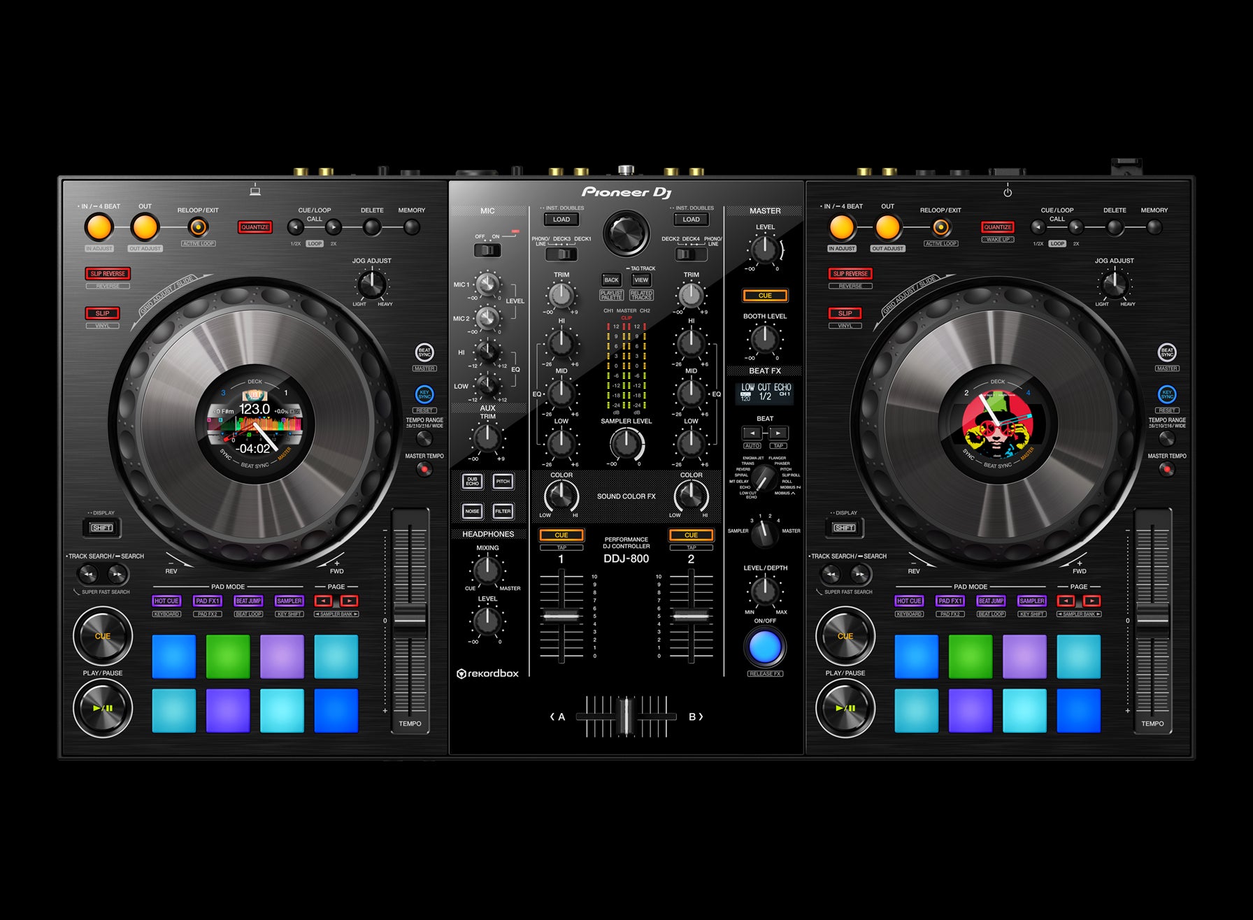 Der 2-Kanal-DJ-Controller DDJ-800 ist ein professionelles DJ-Setup, das Sie überall hin mitnehmen können. Dieses tragbare Gerät übernimmt das Club-Style-Layout und die beliebten Funktionen des DDJ-1000, einschließlich Color On Jog Displays, und packt alles in ein leichteres Gehäuse.