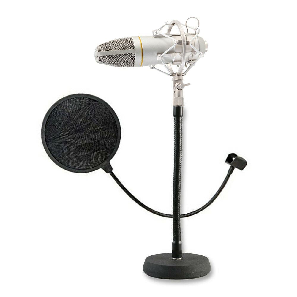 Dieses Paket enthält 1x Pulse USB-Studio-Kondensatormikrofon, 1x Pulse-Mikrofon-Schwanenhals-Tischständer (schwarz) und 1x einlagigen Citronic-Pop-Filter (165 mm).