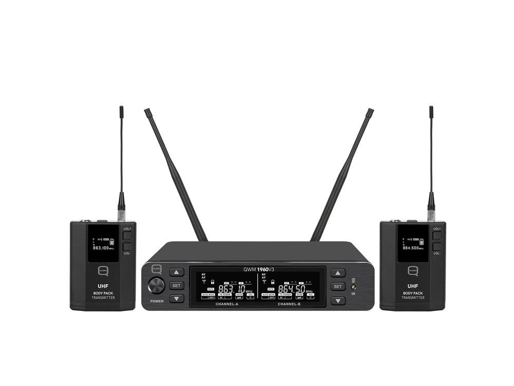Q Audio QWM 1960 V3 Beltpack UHF Dual Headset Lapel UHF CH70