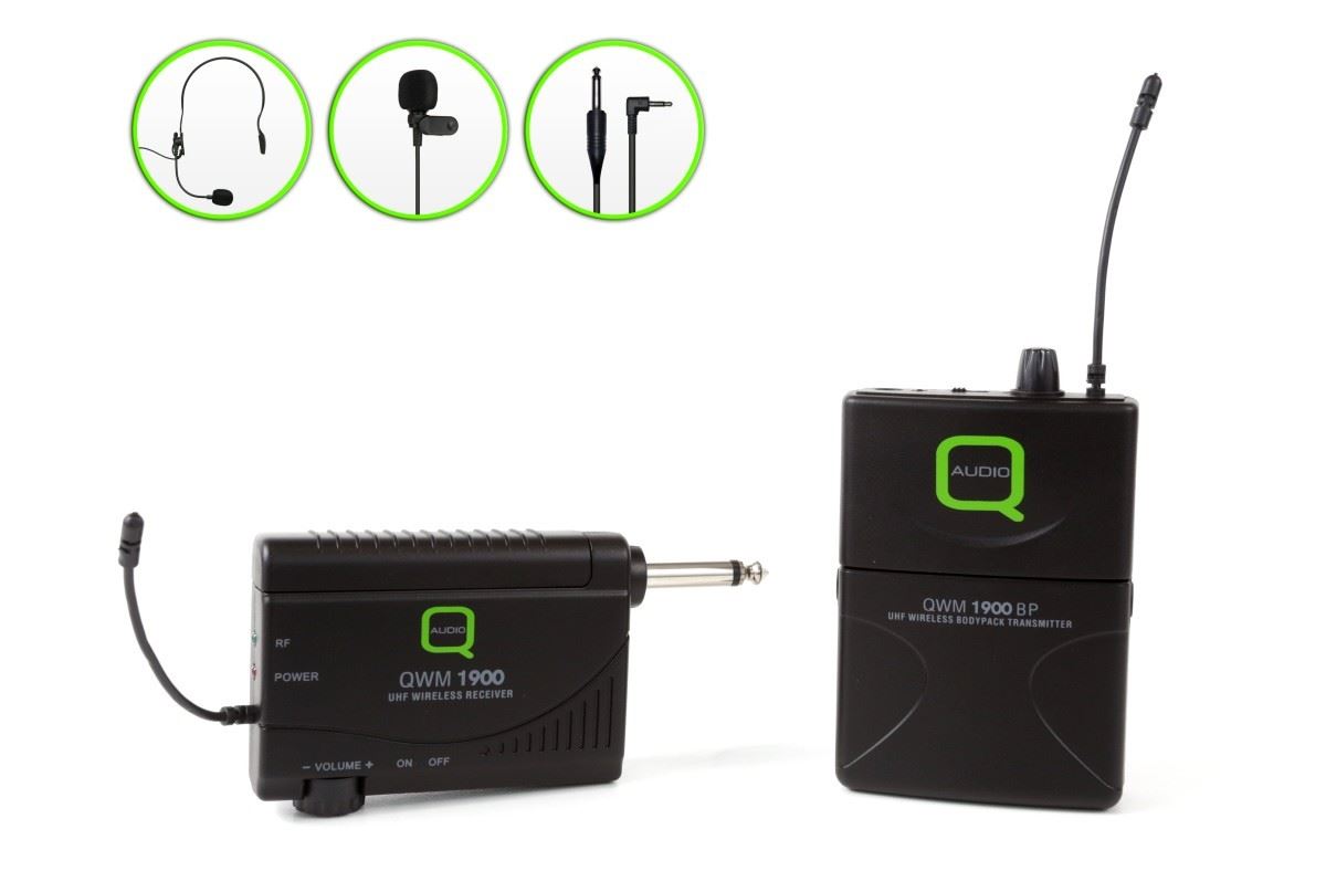Komplett mit Lavalier-/Krawattenmikrofon, Headset-Mikrofon und Instrumentenkabel