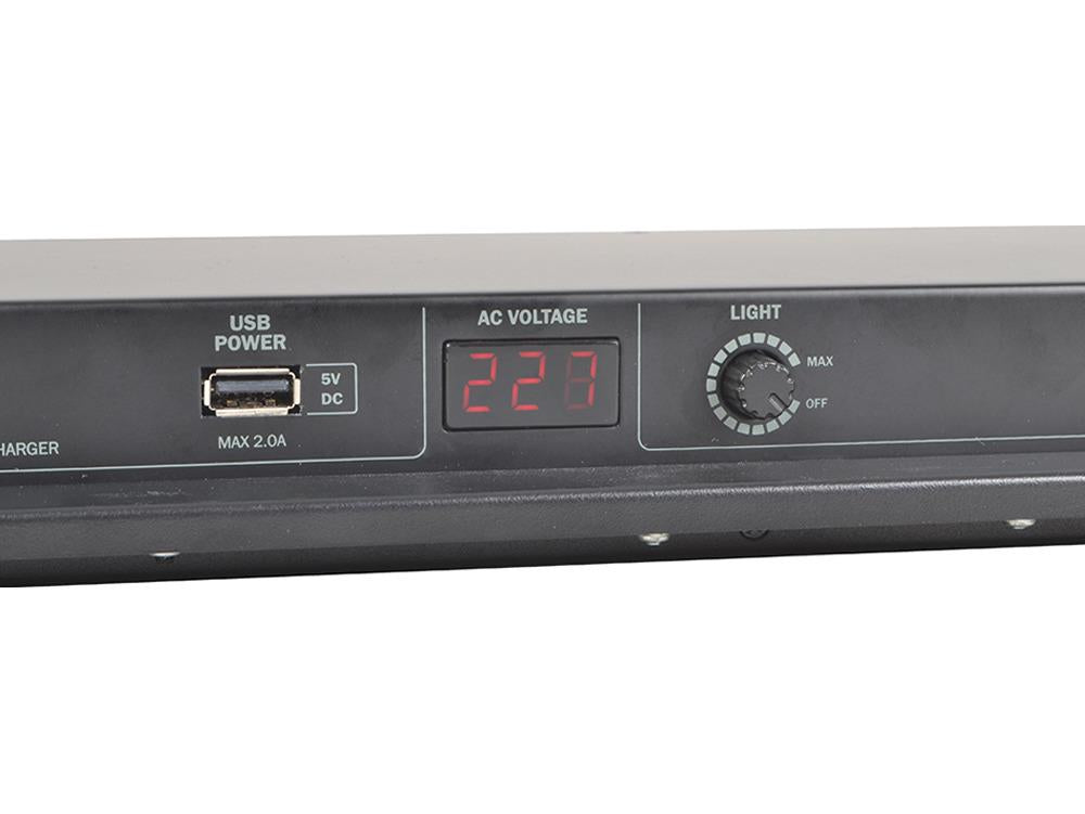QPOWER10 is an indispensable bit of kit for almost any flight case rack with audio and high value equipment in. This Q audio power conditioner features 10 IEC socket outputs to feed various pieces of equipment with RFI/EMI filtering reducing noise in signal paths. An AC Voltage indicator on the front of the unit will give the user visual feedback of the input voltage of the current setting proving invaluable to system technicians. A handy USB power outlet on the front of the RPL can be used to charge devices such as tablets, IOS and Android units. One of the best features of the Q Audio QPOWER10 Power conditioner is the built-in rack light which benefits from a strip of daylight white LEDs that can be dimmed from a rotary dial on the front fascia. This LED strip is also permanently fixed to the power conditioner unlike other models that utilise goosenecks or lamps where breakages can regularly occur on the road.