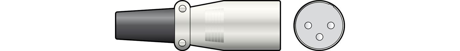 3-polige XLR-Stecker in Standard-Metallausführung mit Zugentlastung und flexiblem Gummi-Kabelschutz. Für Kabel bis 8mmØ.