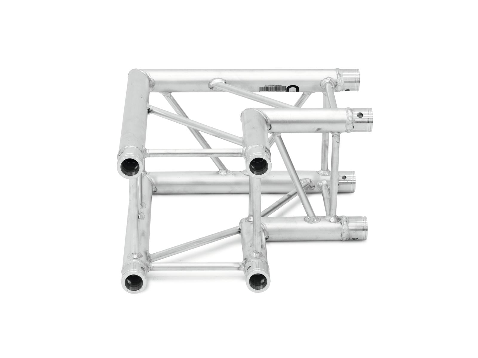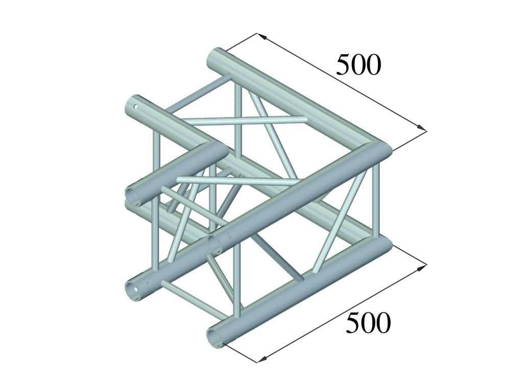 QUADLOCK 6082 4-Punkt-TraversensystemQUADLOCK 6082 ist ein 4-Punkt-Traversensystem aus Aluminium. Die einzelnen Elemente werden über vier Zapfen, Drehzapfen und Stifte verbunden. QUADLOCK 6082 besteht aus der Legierung EN-AW 6082 T6 (AlMgSi1 T6) für noch höhere Belastungen. Der Vorteil des konischen Verbindungssystems besteht darin, dass die Konen vollständig in die Hauptgurte passen, sodass höchste Belastbarkeit gewährleistet ist. Das Quick-Lock-System ermöglicht eine schnelle, effiziente und ästhetisch ansprechende Montage bei häufigem Auf- und Abbau der Fachwerkkonstruktionen. Die vier Hauptgurte bestehen aus 50 mm Aluminiumrohr mit 2 mm Wandstärke und bieten ein gutes Verhältnis zwischen Festigkeit und Gewicht. Die Streben haben einen Durchmesser von 16 mm bei 2 mm Wandstärke und lassen ausreichend Platz für die Montage von Kupplungen, Haken und Klemmen. Mit 290 mm Außenmaß ist QUADLOCK QQTR ein stabiles Traversensystem für höhere Belastungen und längere Haltbarkeit. Dieses System ist vor allem für den intensiven Einsatz im Bühnen-, Messe- und Eventbereich, aber auch für die Festinstallation in Diskotheken und Theatern konzipiert. Seine polierte Oberfläche macht dieses universelle System zu einem echten Hingucker. Aufgrund der großen Auswahl an Standard-Systemlängen, Ecken und Zubehör ist dieses System vielseitig einsetzbar und bietet unbegrenzte Gestaltungsmöglichkeiten. Die Produktion dieses Traversensystems ist TÜV-überwacht. Die Belastungstabelle als Berechnungsgrundlage kann vor dem Kauf des Produkts im Internet heruntergeladen werden! Bitte beachten Sie: Dieses Traversensystem darf niemals mit anderen Systemen kombiniert werden!