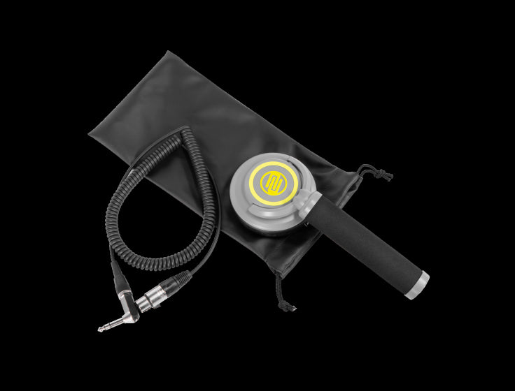 A robust XLR connection with locking mechanism and coiled 6.3 mm jack cable (1.3 to 2.8 metres) ensures secure and adaptable signal routing. A 90 degree angle adapter further improves cable positioning. A spacious vegan leather carry bag is included for safe transport and storage.