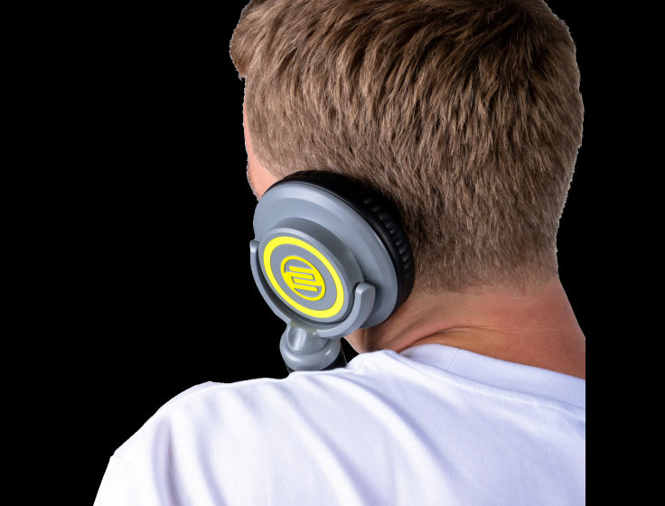 The swivel-mounted ear cup features a water-resistant ear pad made from soft vegan leather and provides excellent comfort thanks to the ergonomic handle and flat, lightweight housing. The construction supports extended use and flexible one-ear application.