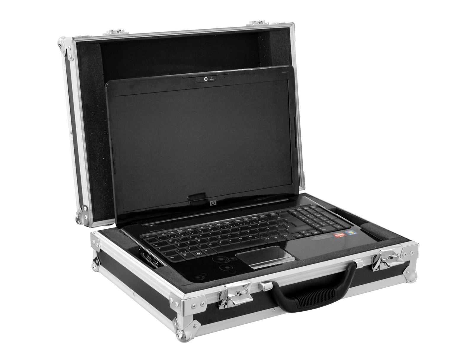 Flightcase für einen Laptop mit 15"Mit der ROADINGER Laptoptasche ist Ihr 15" Laptop immer gut geschützt. Das Hauptfach ist für einen Laptop mit einer maximalen Größe von 370 x 255 x 30 mm ausgelegt. Die im Deckel integrierte Zubehörtasche eignet sich für externe Festplatten oder Netzteile und Kabel. Die hochwertige Verarbeitung mit 4 mm starkem, mehrschichtig verleimtem Holz und der robuste Tragegriff sorgen dafür, dass Ihr Laptop gut geschützt ist. Für die nötige Stabilität sorgen der Aluminium-Profilrahmen und die kleinen, dreibeinigen Stahlkugelecken. Die beiden abschließbaren Schnappschlösser sichern Ihren Laptop zusätzlich vor unbefugtem Zugriff.