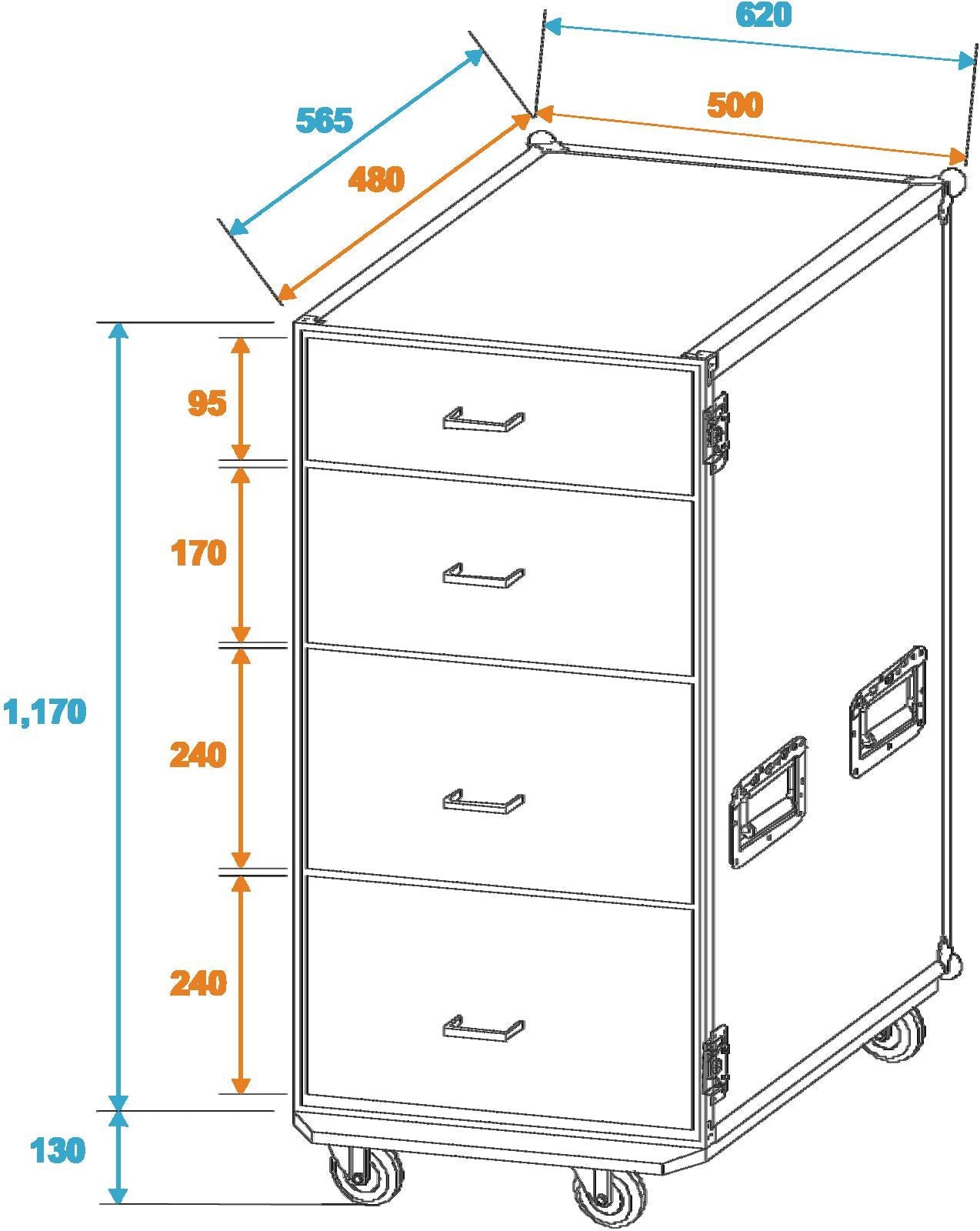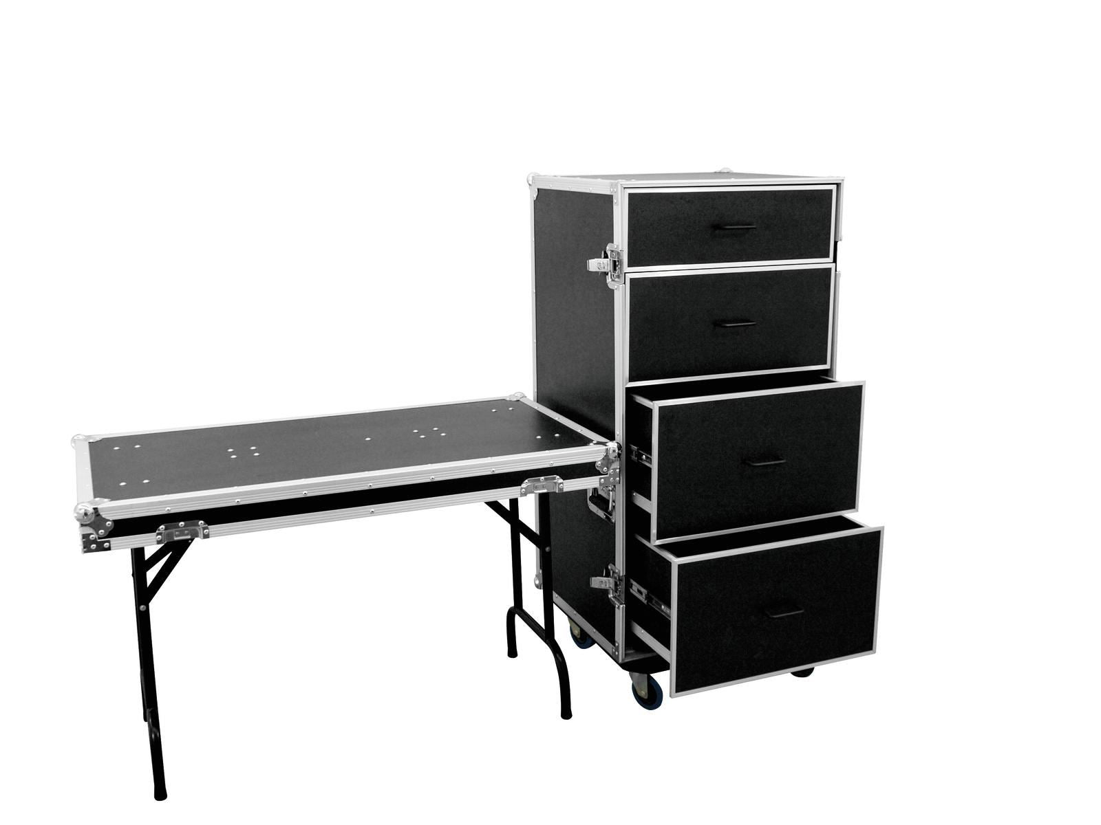 Flightcase mit integriertem Schreibtisch und 4 Schubladen (2 x 7,5 HE, 1 x 6 HE, 1 x 4 HE)