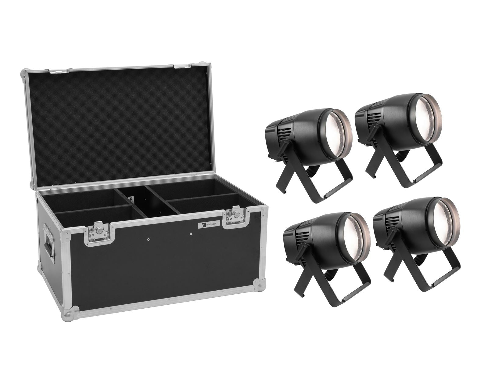 4x wetterfester LED-Spot mit warmweißer 100 W LED inklusive PRO Flightcase