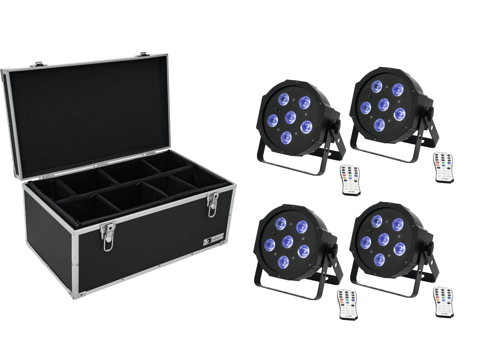 4x Flachstrahler mit 5 x 3W 3in1 LED und einer 3W UV LED inklusive Koffer