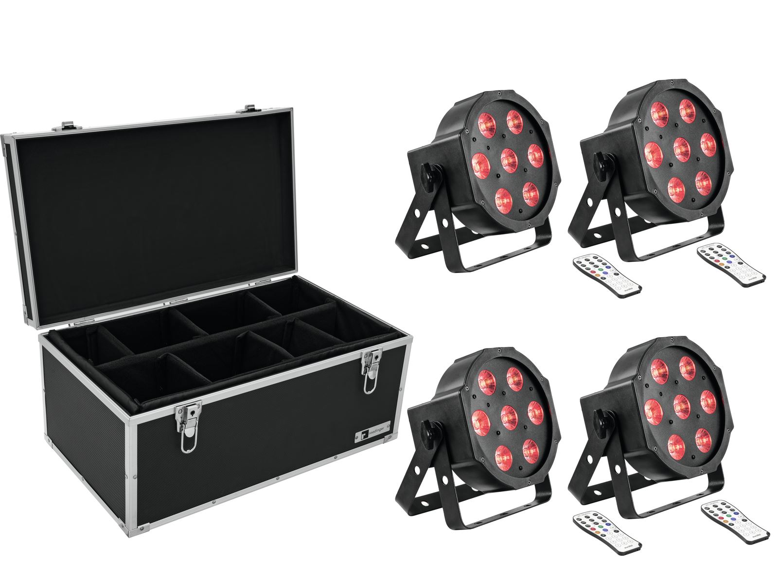 4x LED spotlight with RGBAW+UV color mixing incl. universal case