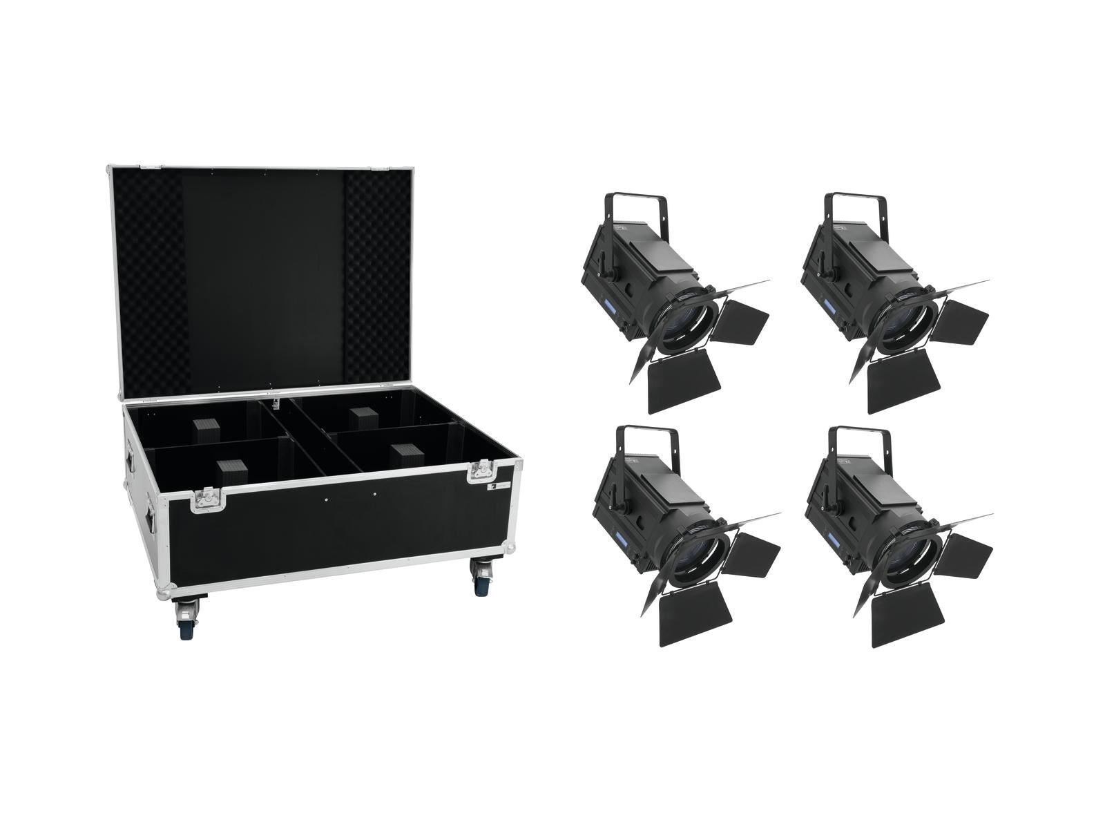 4x Theater-Spot with fresnel spot including PRO flightcase