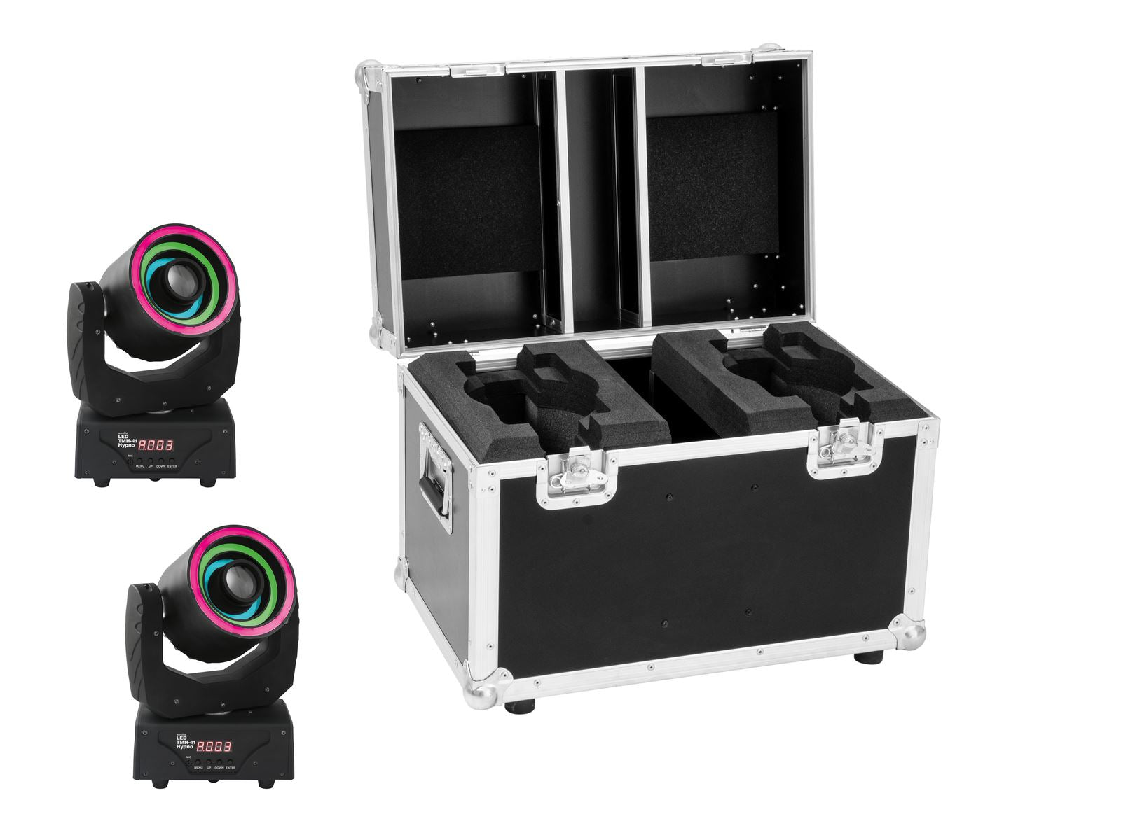 2x schmaler Winkelstrahler mit 3 Hypno-Ringen und 30 W LED inkl. PRO Flightcase