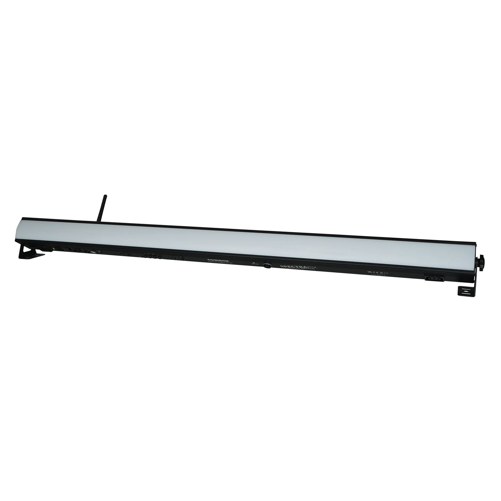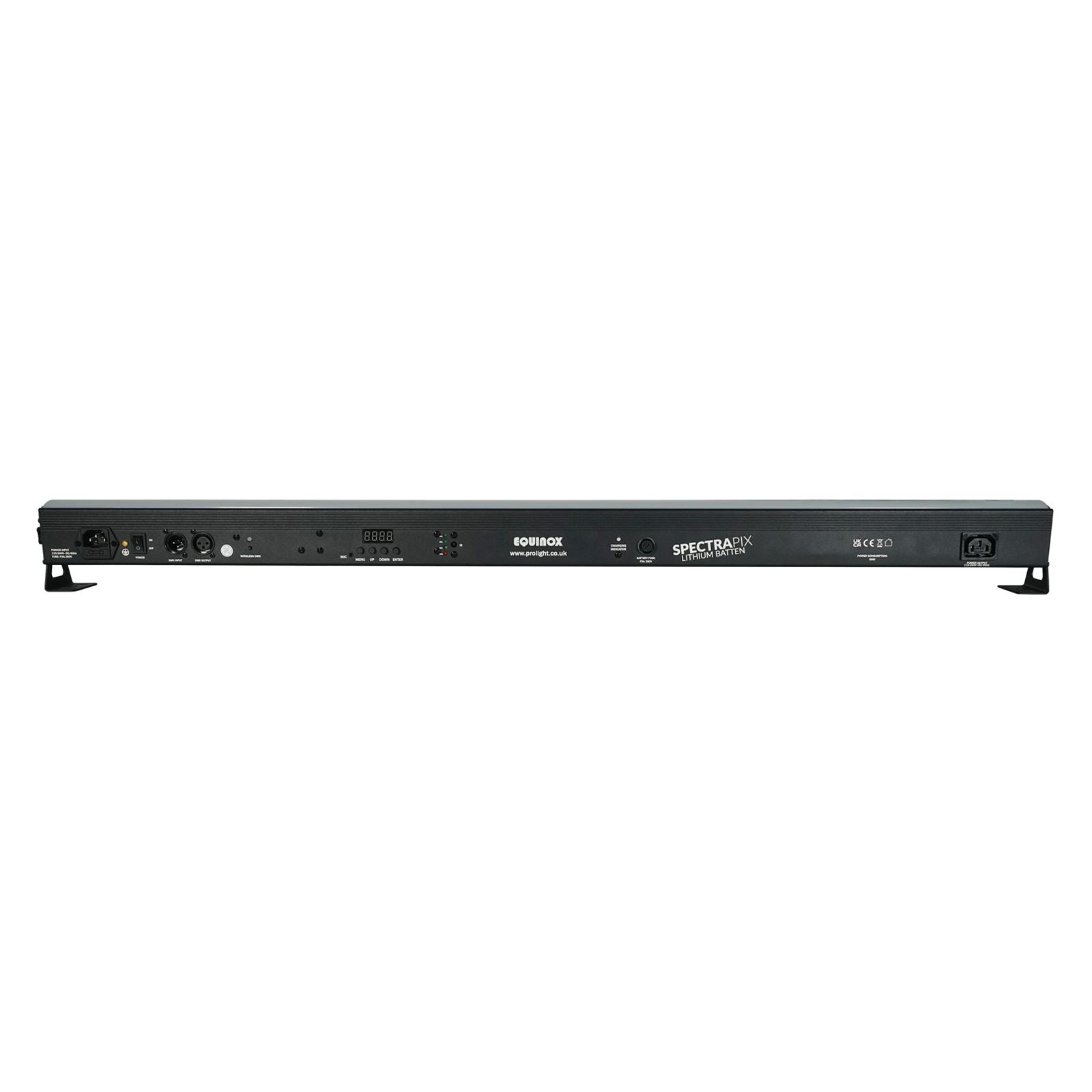 The SpectraPix Lithium Batten contains 224 SMD 5050 RGB LEDs divided into 16 segments. They feature a wide 120° viewing angle and feature a milky, frost effect front screen along with clear front screen to further expand the versatility of this fixture. The internal lithium battery has autonomy of up to 7.5 hours in single colour mode and up to 16 hours of colour fading and chases, while the charging time is only 4 hours. Onboard features include colour mixing to create soft washes from its rich colour palette, and chase programs controlled in auto mode or activated by music. The IR remote and on-board wireless DMX receiver makes for a truly cable free operation and is W-DMX compatible.
