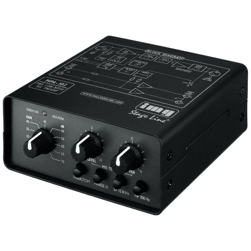 1-Kanal rauscharmer Mikrofonvorverstärker, für Netzbetrieb oder Batteriebetrieb.
