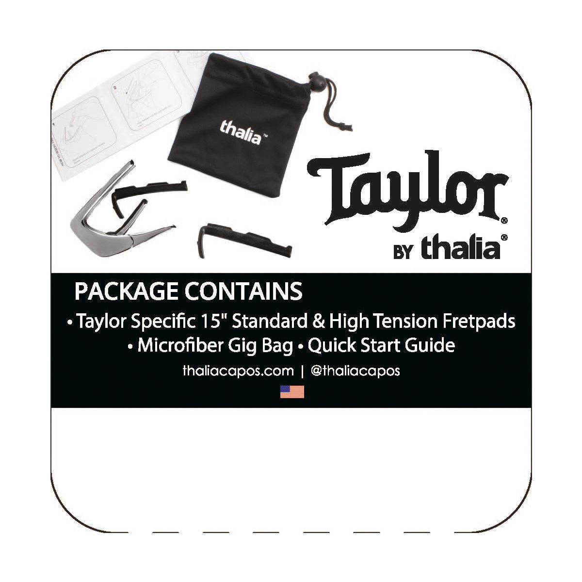 Thalia Officially Licensed Taylor Guitars Capos come equipped with our Standard Tension 15 Radius œOctaveTouch Fret Pad installed for use on Taylor 6 string acoustic models. Included in the package is a High Tension 15 Radius œOctaveTouch Fret Pad for use on 12 String models. œOctaveTouch fret pads mimic the elasticity of the human finger.