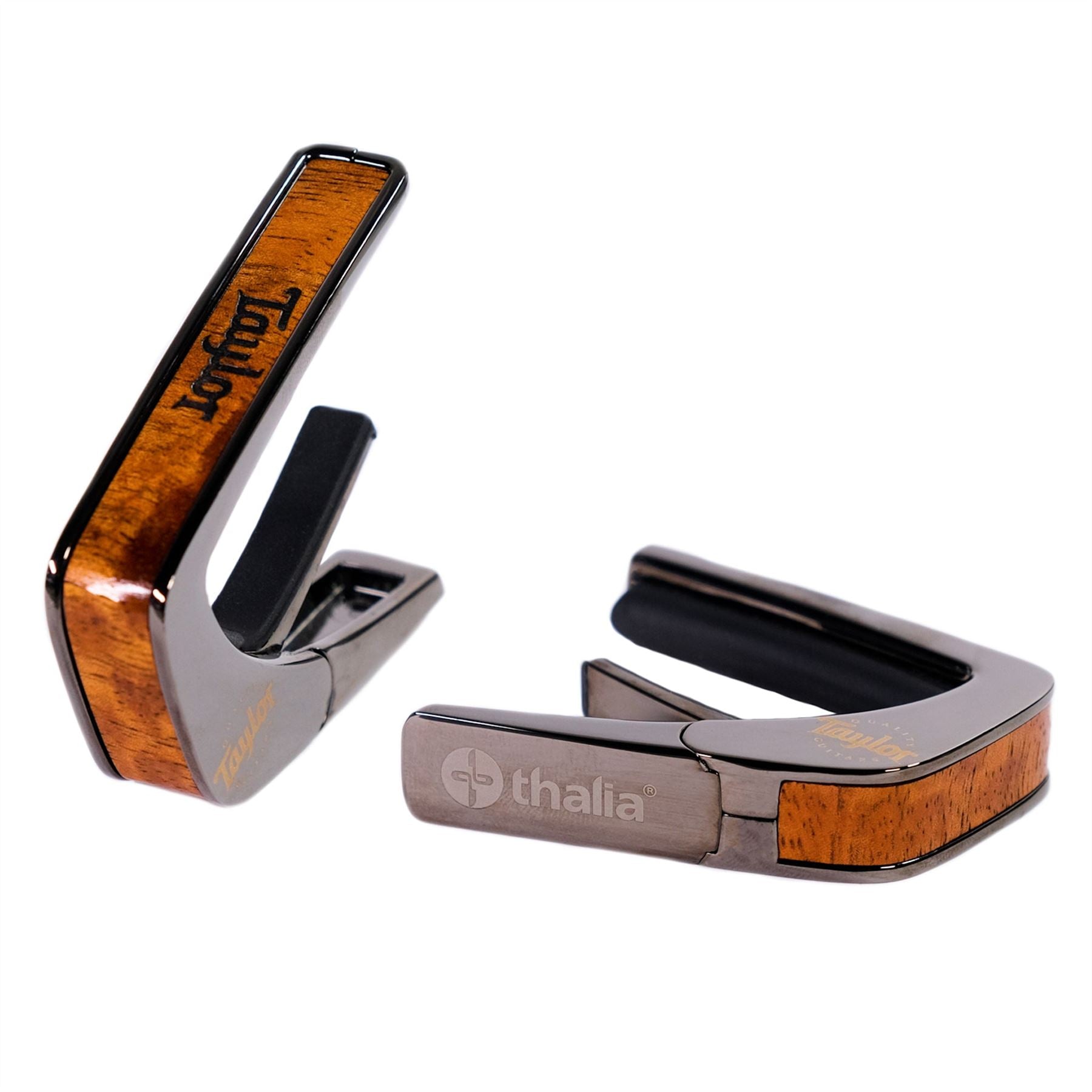Thalia Taylor Black Chrome Finish Capo - Koa With Black Taylor Logo