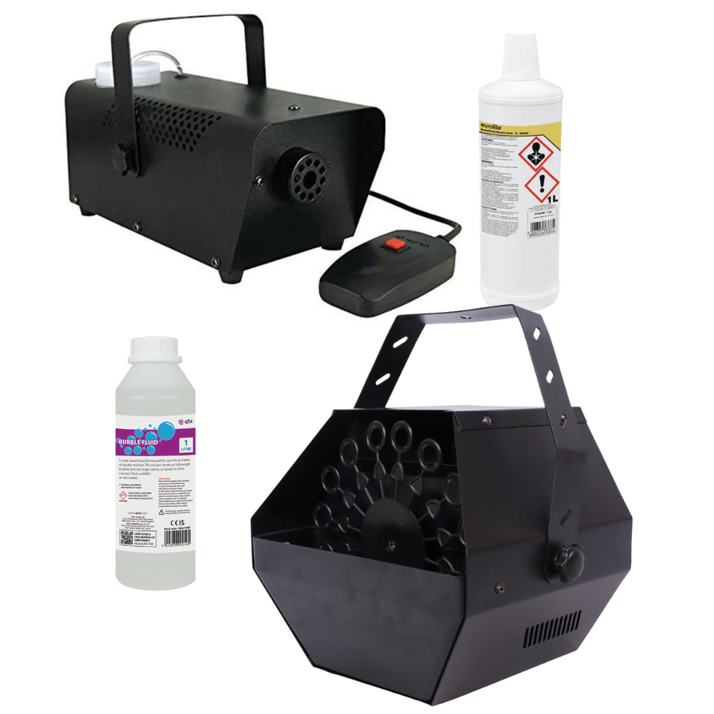 Bundle includes Thor Smoke machine, Thor bubble machine including 1L fluid for each