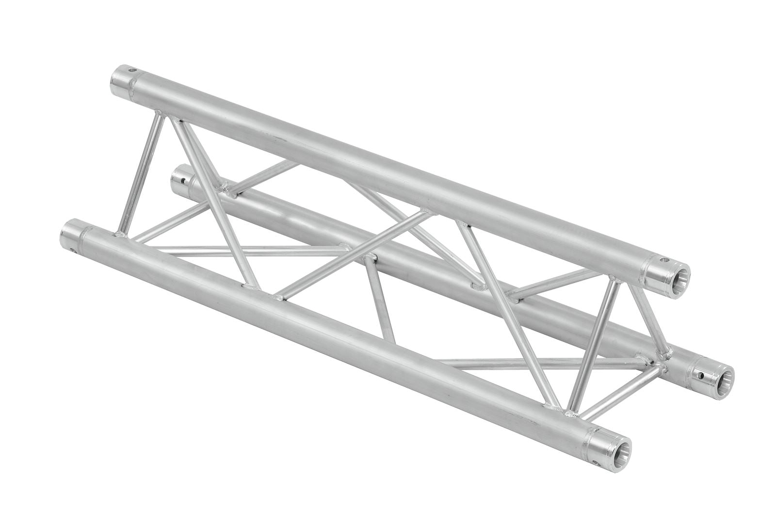TRILOCK 6082 3-Punkt-TraversensystemTRILOCK 6082 ist ein 3-Punkt-Traversensystem aus Aluminium. Die einzelnen Elemente werden über drei Kegel, Drehzapfen und Stifte verbunden. TRILOCK 6082 besteht aus der Legierung EN-AW 6082 T6 (AlMgSi1 T6) für noch höhere Belastungen. Der Vorteil des konischen Verbindungssystems besteht darin, dass die Konen vollständig in die Hauptgurte passen, sodass höchste Belastbarkeit gewährleistet ist. Das Quick-Lock-System ermöglicht eine schnelle, effiziente und ästhetisch ansprechende Montage bei häufigem Auf- und Abbau der Traversenkonstruktionen. Die drei Hauptgurte bestehen aus 50 mm Aluminiumrohr mit 2 mm Wandstärke und bieten ein gutes Verhältnis zwischen Festigkeit und Gewicht. Die Streben haben einen Durchmesser von 16 mm bei 2 mm Wandstärke und lassen ausreichend Platz für die Montage von Kupplungen, Haken und Klammern. Mit 290 und 257 mm Außenmaß ist TRILOCK QTTR ein stabiles Traversensystem für höhere Belastungen und längere Haltbarkeit. Dieses System ist hauptsächlich für den intensiven Einsatz bei Bühneninstallationen, Messeinstallationen, Eventinstallationen, aber auch für dauerhafte Installationen in Diskotheken und Theatern konzipiert. Seine polierte Oberfläche macht dieses Universalsystem zu einem echten Hingucker. Durch die große Auswahl an Standard-Systemlängen, Ecken, Kreisen und Zubehör ist dieses System vielseitig einsetzbar und bietet unbegrenzte Gestaltungsmöglichkeiten. Die Produktion dieses Traversensystems ist TÜV-überwacht. Die Belastungstabelle als Berechnungsgrundlage kann vor dem Kauf des Produkts im Internet heruntergeladen werden! Bitte beachten Sie: Dieses Traversensystem darf niemals mit anderen Systemen kombiniert werden!