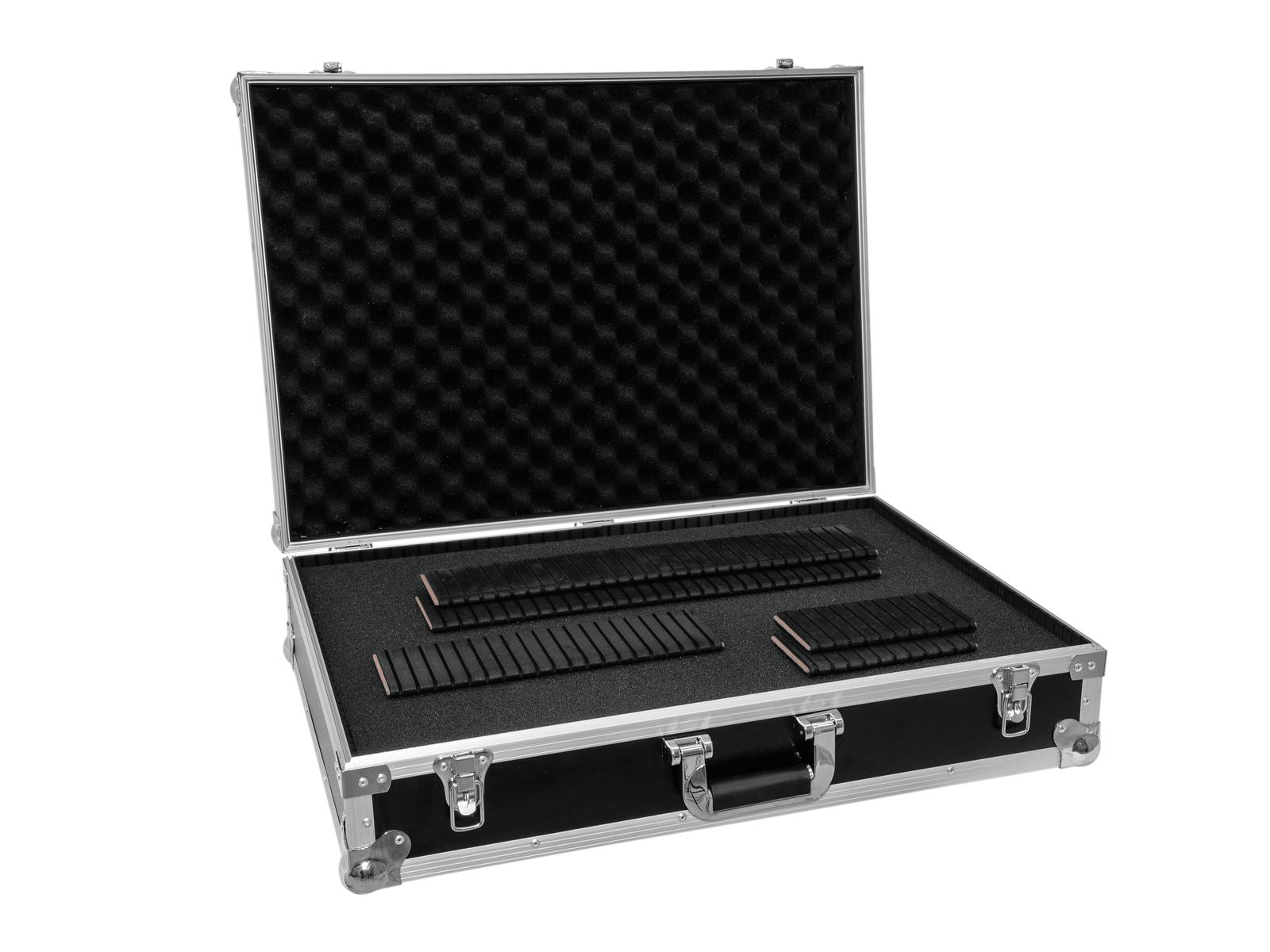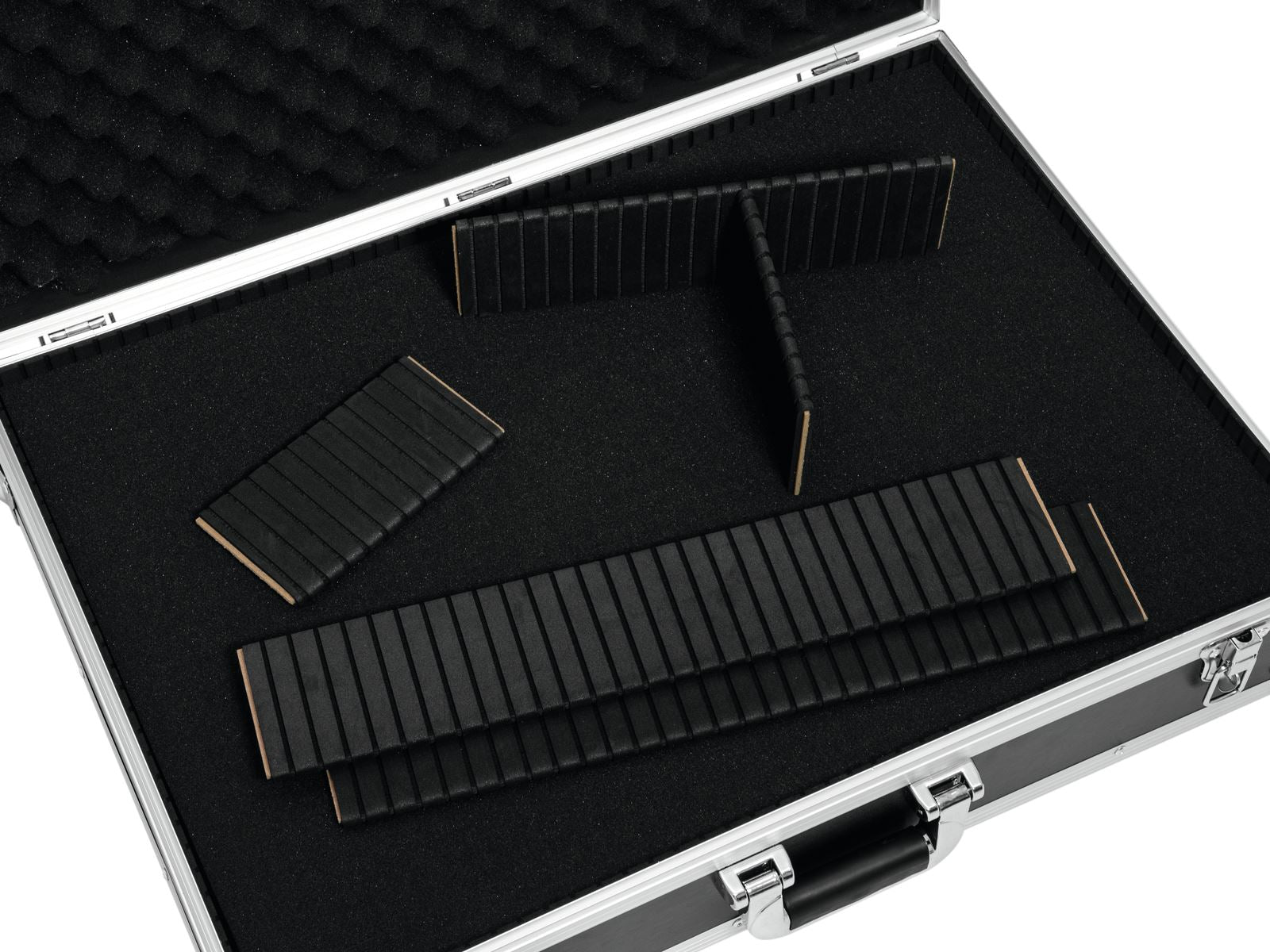 Allzweck-Flightcase mit WürfelschaumDer ROADINGER Universal-Case-Pick ist mit hochfester Schaumstoffpolsterung und Würfelschaum ausgestattet. Dadurch können Sie Ihren Koffer individuell an Ihre Ausrüstung anpassen. Der Innenteil kann daher ohne Schneiden oder weitere Bearbeitung geteilt werden. Die hochwertige Verarbeitung mit mehrschichtig verleimtem Holz, Aluminiumprofilrahmen mit abgerundeten Ecken und dreibeinigen, mittelgroßen Stahlkugelecken verleihen dem Koffer Stabilität. Das Flightcase verfügt außerdem über zwei abschließbare Schnappverschlüsse und einen robusten Tragegriff.