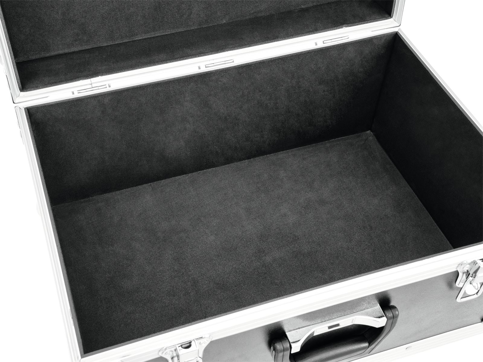 Flightcase Tour ProMit dem ROADINGER Universalkoffer transportieren Sie Ihre Ausrüstung und Ihr Zubehör stets sicher und gut verstaut. Der Innenraum ist mit schwarzem Schaumstoff ausgekleidet, der Ihre Ausrüstung vor Kratzern und Stößen schützt. Die hochwertige Verarbeitung der 7 mm starken Wände, der Aluminium-Profilrahmen mit abgerundeten Ecken und die dreibeinigen, mittelgroßen Stahlkugelecken sorgen für Stabilität. Das Flightcase Tour Pro verfügt über einen robusten Tragegriff und verfügt zudem über zwei abschließbare Schnappverschlüsse.