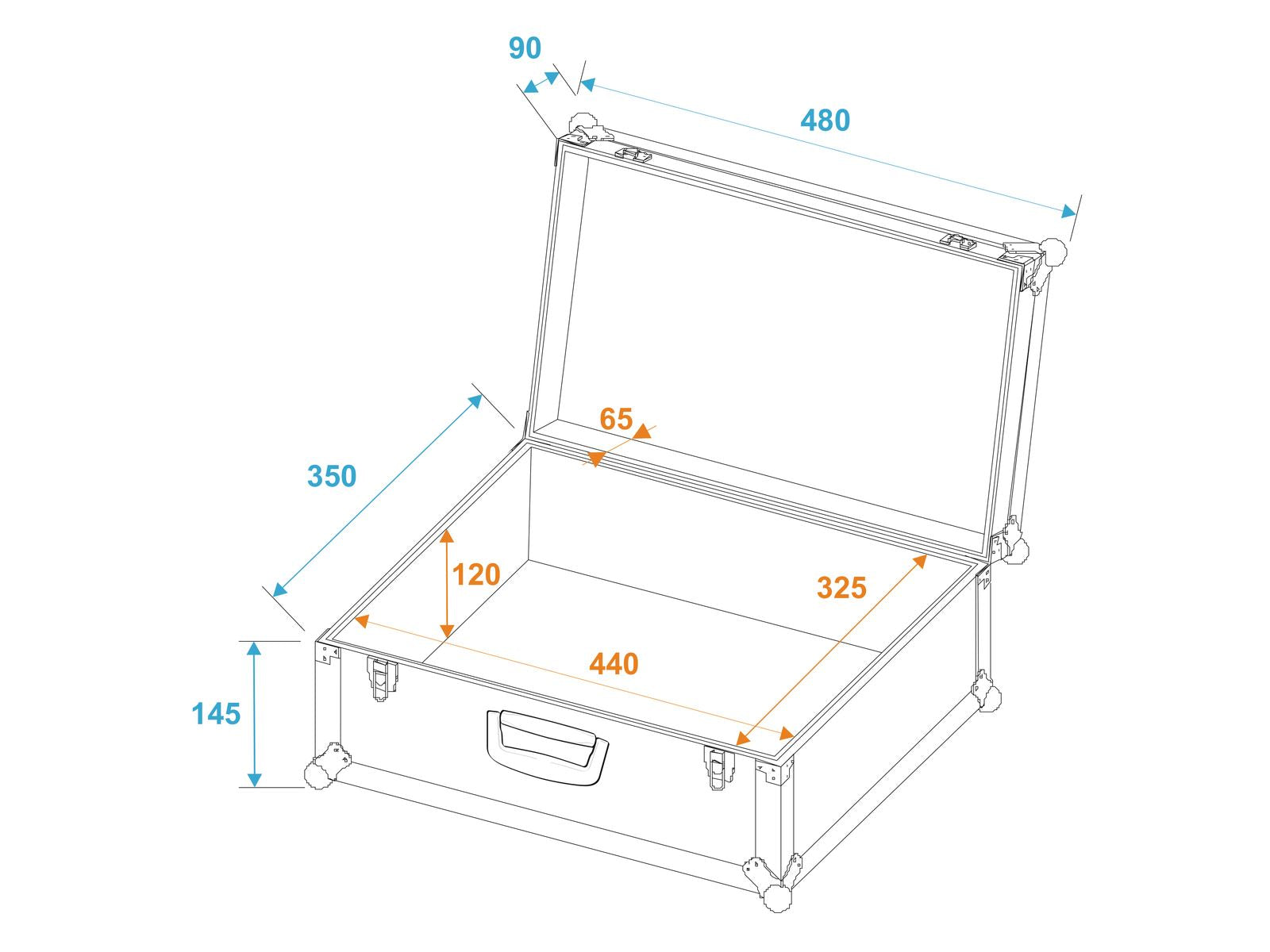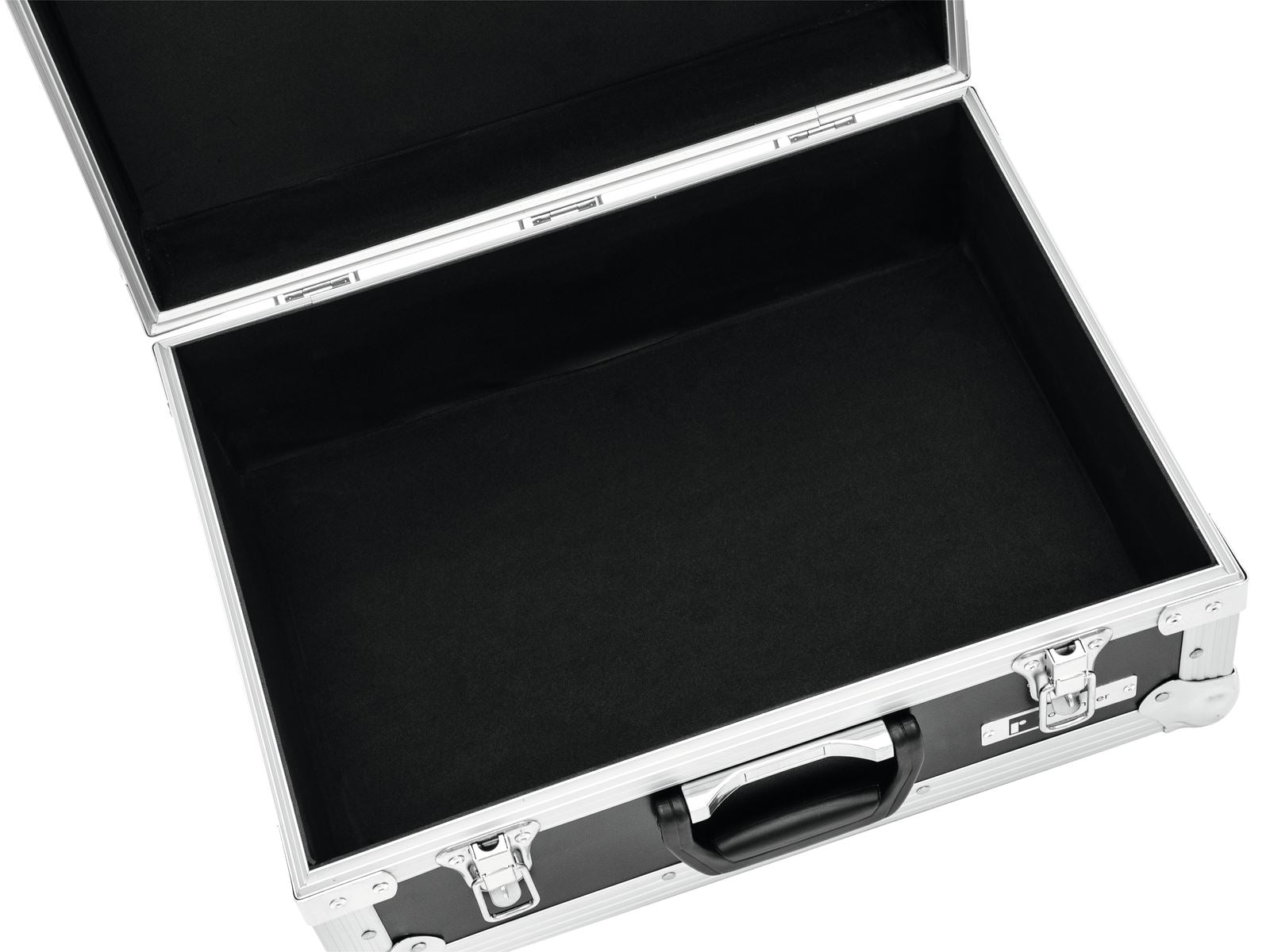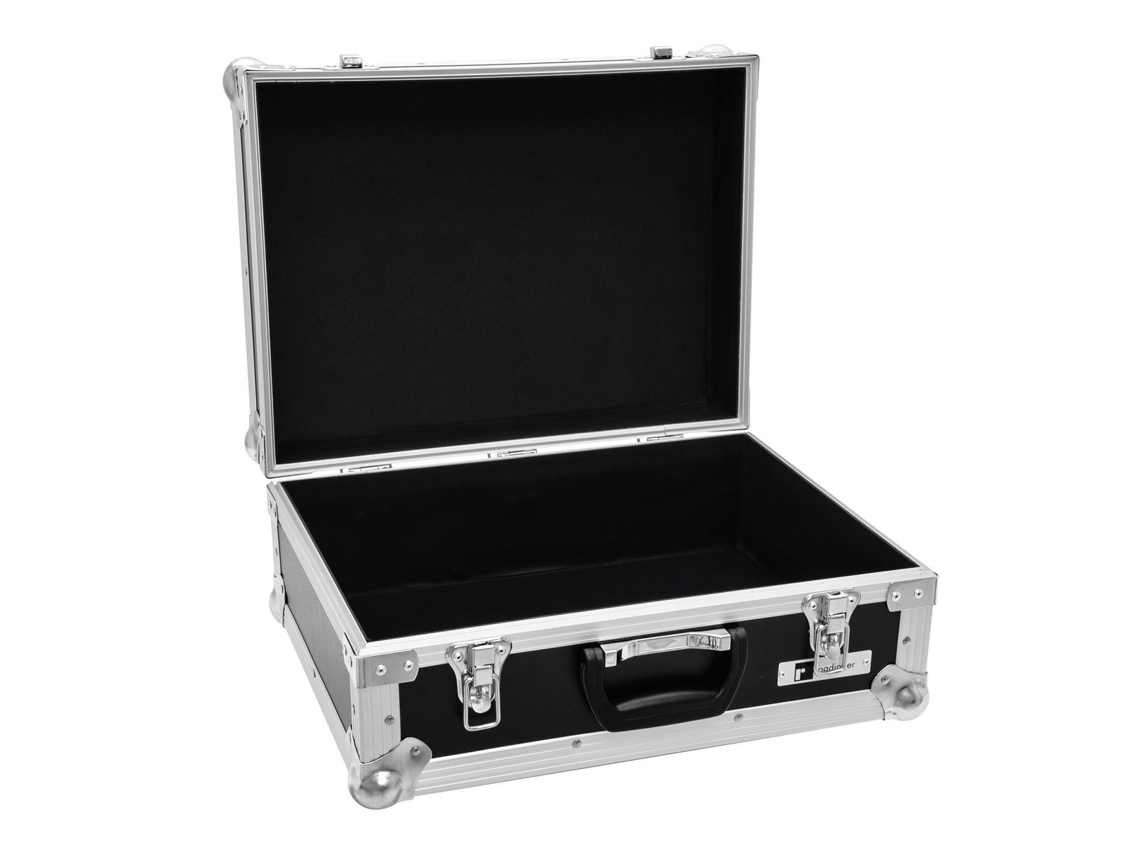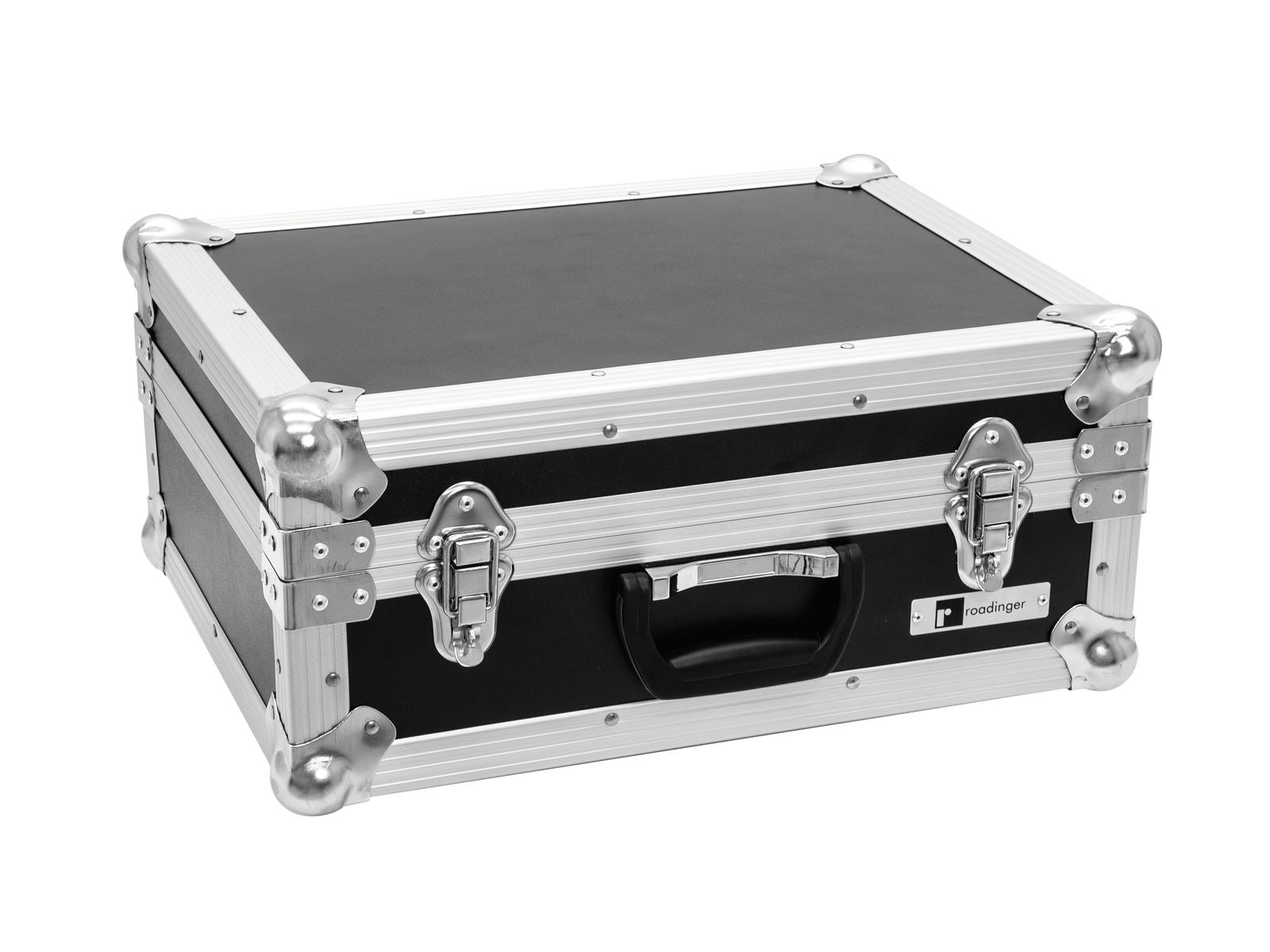Flightcase Tour Pro für alle ZweckeDas ROADINGER Universal Case Tour Pro ist ein vielseitiger und sehr stabiler Tourkoffer. Die Seiten des Koffers bestehen aus mehrschichtig verleimtem Holz, der Innenraum und der Deckel sind mit einer schwarzen Schaumstoffpolsterung ausgekleidet. Für die nötige Stabilität sorgen der Aluminium-Profilrahmen mit abgerundeten Ecken und die dreibeinigen, mittelgroßen Stahlkugeln. Sie können den Koffer mit zwei abschließbaren Schnappverschlüssen verschließen. Mit dem robusten Klappgriff haben Sie Ihren Universalkoffer immer sicher im Griff. Die maximale Belastung beträgt 25 kg.
