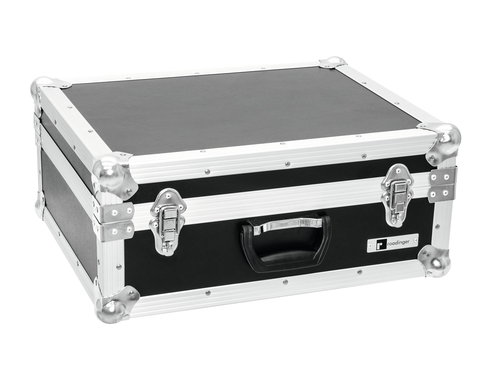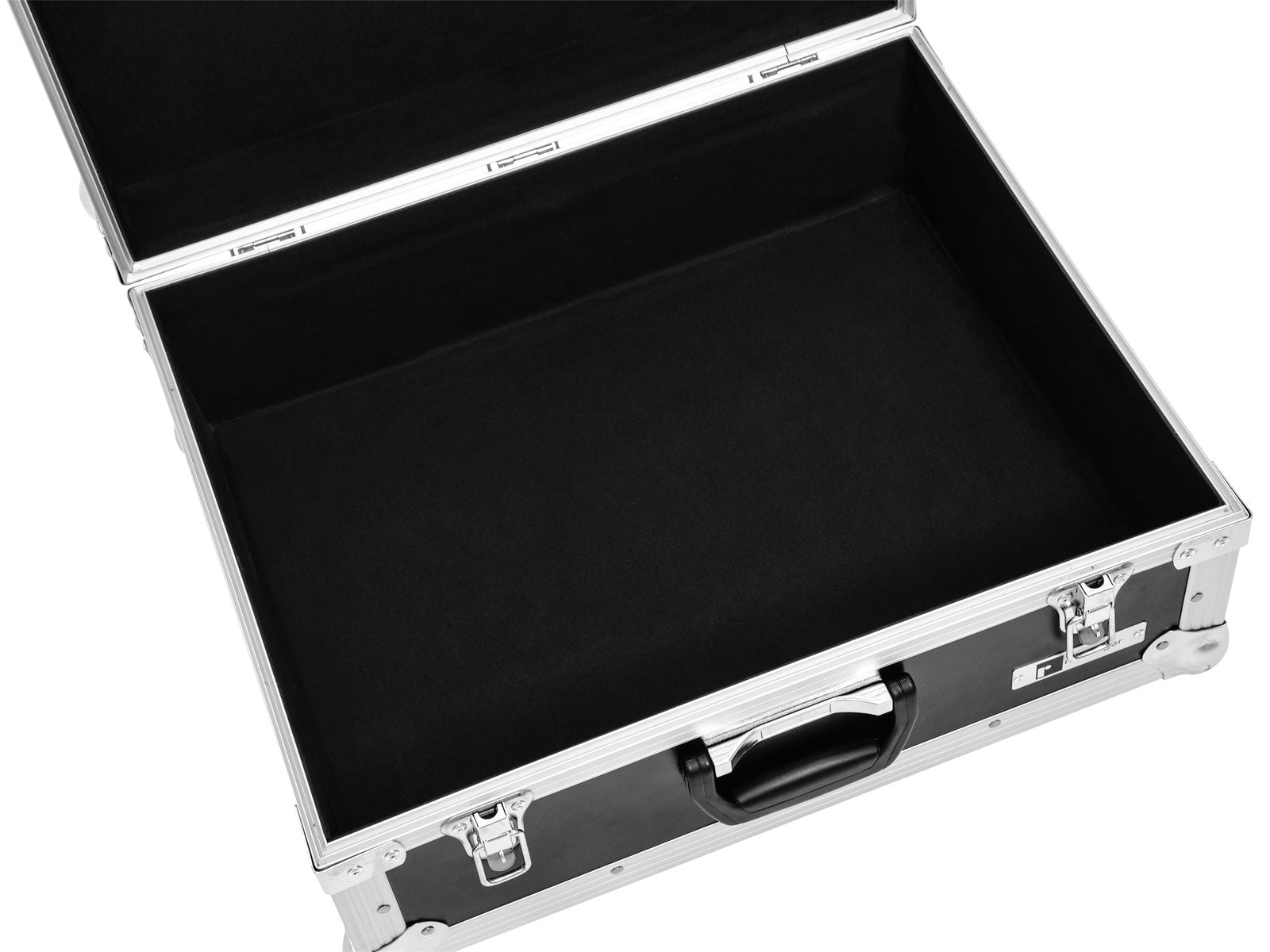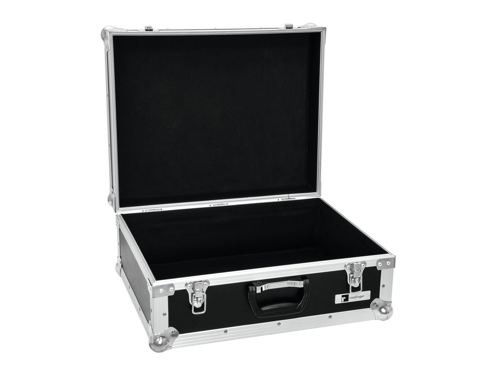 Flightcase Tour Pro für alle ZweckeDas ROADINGER Universal Case Tour Pro ist ein vielseitiger und sehr stabiler Tourkoffer. Die Seiten des Koffers bestehen aus mehrschichtig verleimtem Holz, der Innenraum und der Deckel sind mit einer schwarzen Schaumstoffpolsterung ausgekleidet. Für die nötige Stabilität sorgen der Aluminium-Profilrahmen mit abgerundeten Ecken und die dreibeinigen, mittelgroßen Stahlkugeln. Sie können den Koffer mit zwei abschließbaren Schnappverschlüssen verschließen. Mit dem robusten Klappgriff haben Sie Ihren Universalkoffer immer sicher im Griff. Die maximale Belastung beträgt 25 kg.