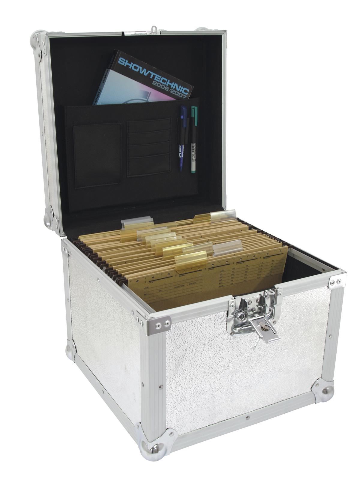 Zur Sicherheit! Wenn wir an Koffer und vor allem an deren Innenleben denken, kommen uns meist Instrumente, Effekte oder technische Geräte in den Sinn. Doch Bürokratie und Verwaltung machen heutzutage auch vor der Messetechnik-Branche nicht halt und so empfiehlt es sich immer, Verträge, Zeitpläne oder wichtige Dokumente in einem speziellen Koffer aufzubewahren. Aus diesem Grund haben wir eine universelle Dokumententasche entwickelt. In einem Hängeregistraturordner können die Dokumente richtig sortiert werden, der Deckel bietet zusätzlichen Stauraum für Ordner und Stifte. Durch die hochwertige Verarbeitung ist ein maximaler Schutz gewährleistet. Der Koffer muss übrigens nicht nur mit Dokumenten gefüllt sein. Farbfolien anstelle von Dokumenten sind ein gutes Beispiel dafür, wie flexibel die Hülle ist.