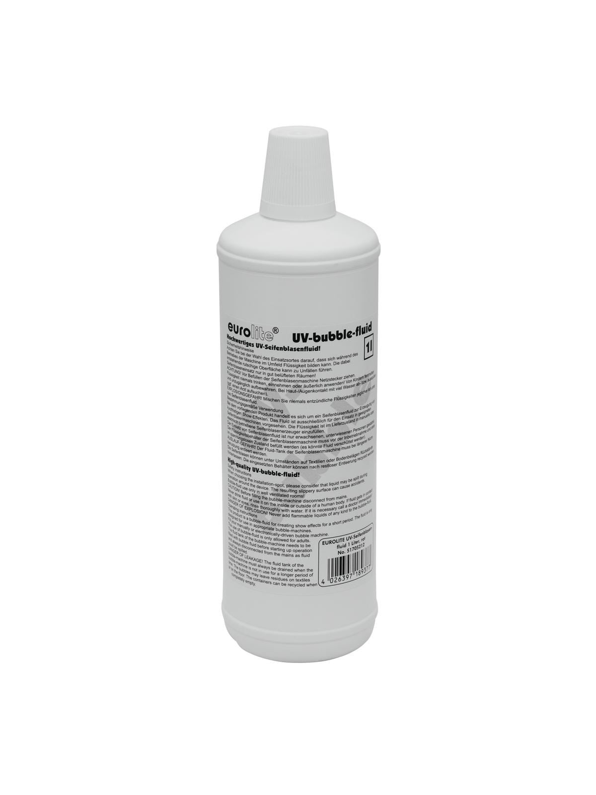 Gebrauchsfertige UV-aktive Seifenblasen Die gebrauchsfertige Seifenblasenflüssigkeit von EUROLITE erzeugt unter normalen Lichtbedingungen normale Blasen. Bei Einwirkung von UV-Licht beginnen die Seifenblasen rötlich zu leuchten, was sie zum ultimativen Hit für Disco, Partys und Konzerte macht. Das EUROLITE UV Seifenblasen-Fluid wird in Deutschland hergestellt.