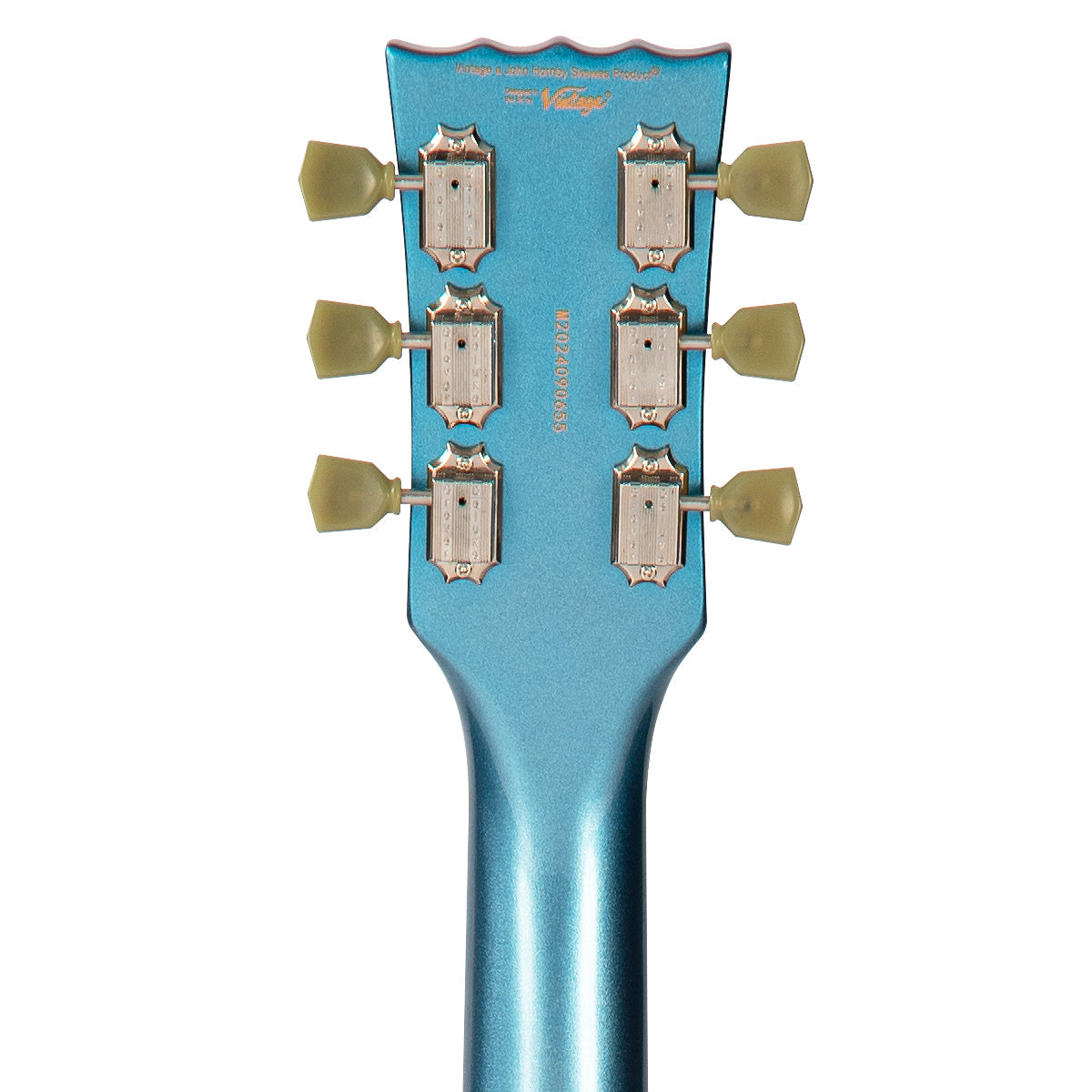 Classic Vintage headstock and pearloid scratchplate for refined vintage aesthetics