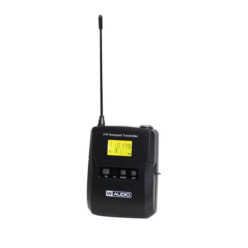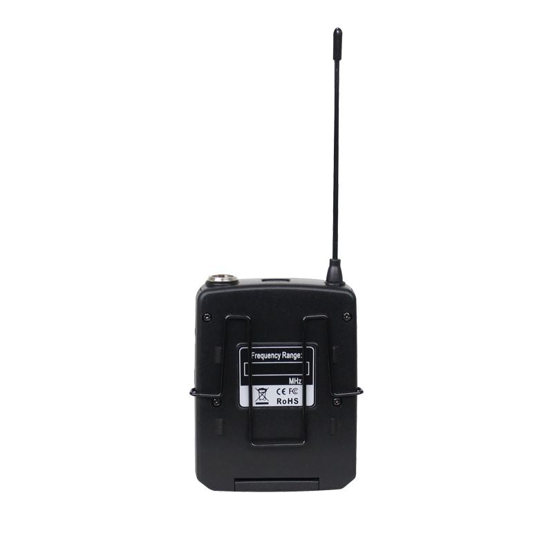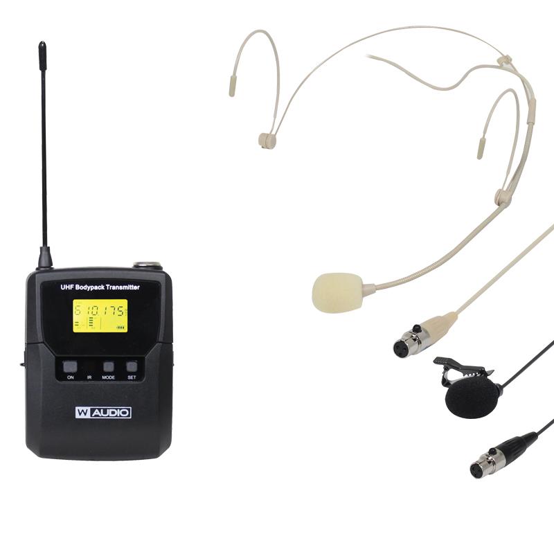 Gürtelpaket-Set, bestehend aus einem Gürtelsender plus Theatermodell, beigem Headset-Mikrofon und Lavalier-Mikrofon zur Verwendung anstelle des Handsenders.