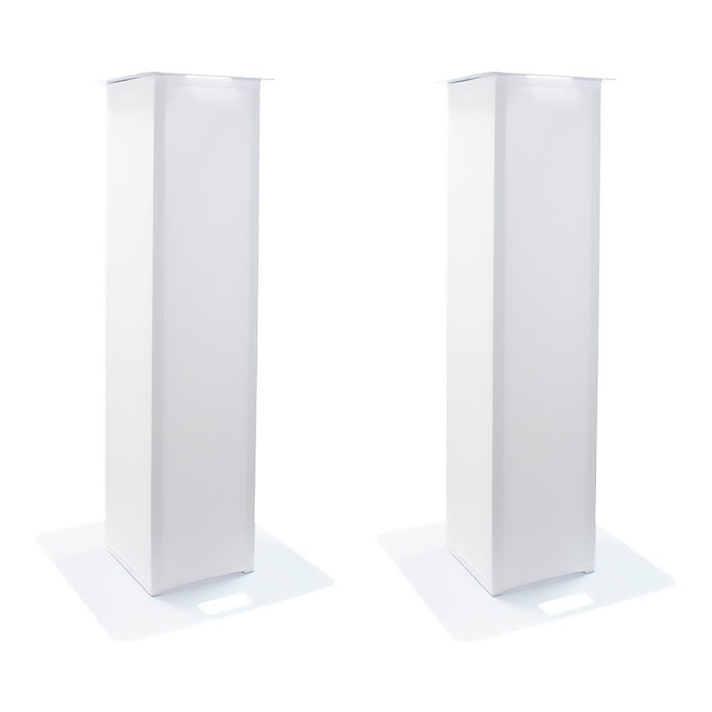 Chaque socle comprend : 2 x cadres verticaux, 1 x canevas en lycra blanc, 1 x plaque de base, 1 x plaque supérieure, 8 x boutons de fixation, 1 x adaptateur de poteau d'enceinte 35 mm, 1 x sac de transport