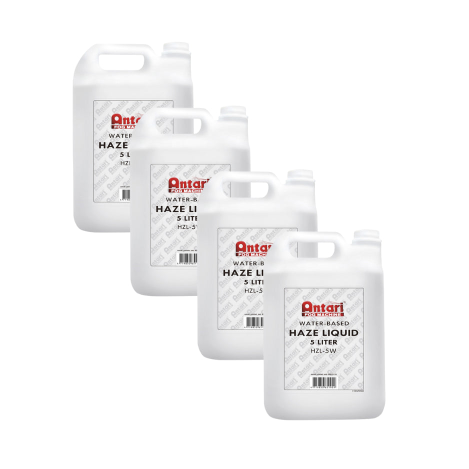 Ce lot comprend 4 bouteilles de 5 litres de liquides brumeux à base d'eau Antari HZL-5W.