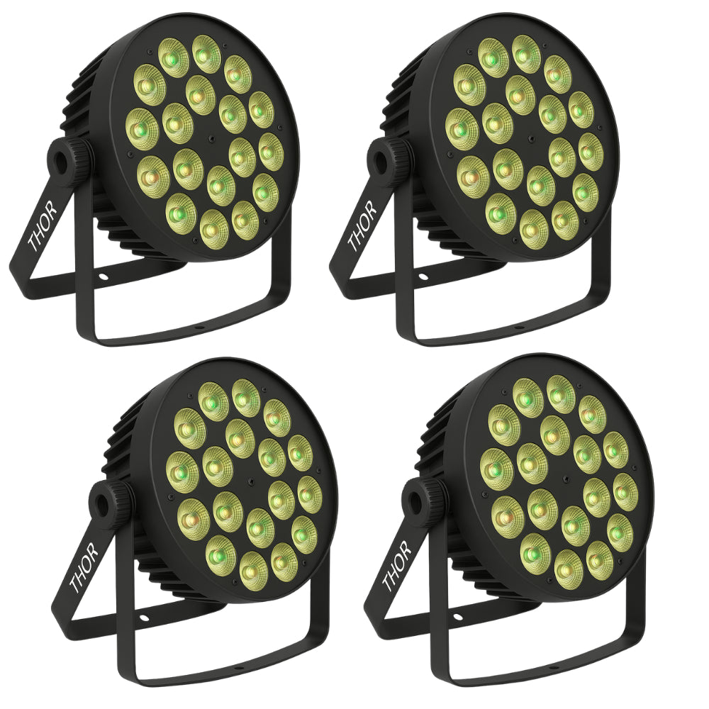 4x Thor Mighty Par Quad RGBW LED Slim Par 18 x 4W Uplighter inc Carry Bag