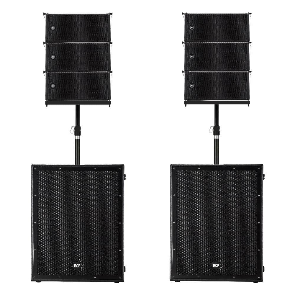 This bundle includes 6x HDL-6A line array modules with RCF SUB-8004 AS active subwoofer and 2x speakers poles/ mounting kit