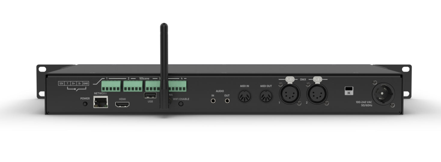 Its 24 universes of DMX output are expandable to 48 via licence upgrade and connectivity features include two RDM-enabled DMX ports, inbuilt Wi-Fi for programming and remote control, and four 10Scene ports for connecting up to forty 10Scene wall plates.