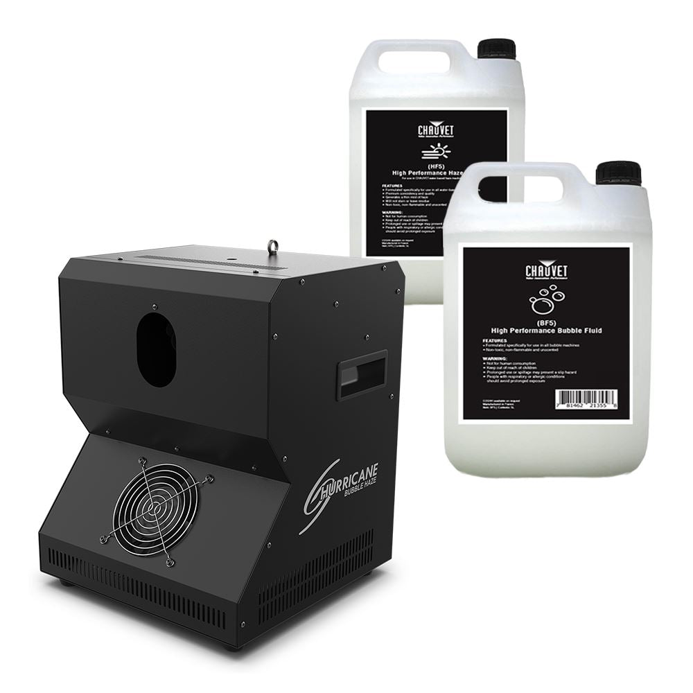 Hurricane Bubble Haze amène l’atmosphère de fête à de nouveaux niveaux. C'est une machine à brume. C'est une machine à bulles. C'est les deux à la fois ! Cette machine atmosphérique polyvalente émet des bulles, de la brume ou même des bulles remplies de brume, et sa technologie toujours prête permet à l'unité de fonctionner en continu pour que la fête continue. Hurricane Bubble Haze est doté d'un réservoir à bulles alimenté par gravité qui fait recirculer le liquide à bulles inutilisé, réduisant ainsi la consommation de liquide. Une fonction de nettoyage intégrée augmente la longévité de la machine et réduit les obstructions. Hurricane Bubble Haze est compatible avec le fluide BJG.