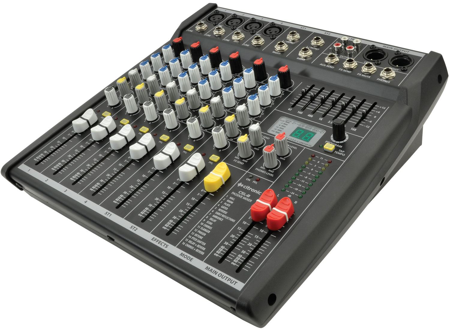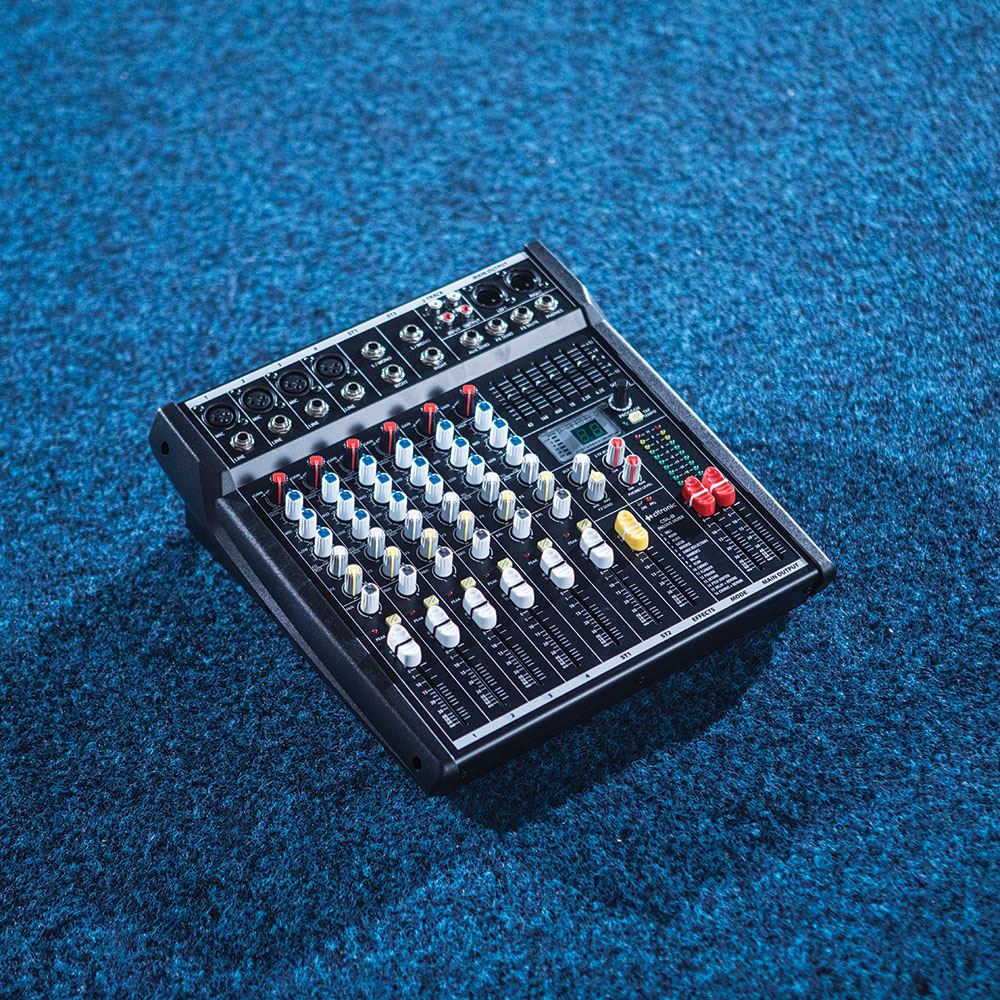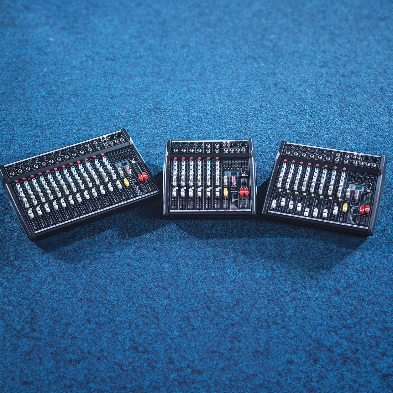 Consoles de mixage compactes avec entrées micro/ligne symétriques et 2 entrées stéréo, chacune avec égaliseur 3 bandes et départ auxiliaire. Une section DSP à 16 programmes avec tap tempo peut fournir des effets vocaux et un égaliseur graphique à 7 bandes facilite le contrôle global de la tonalité. Conçus principalement pour les salles et les applications scéniques, ces modèles offrent une solution compacte et complète pour la sonorisation mobile, les bars et les événements spéciaux.