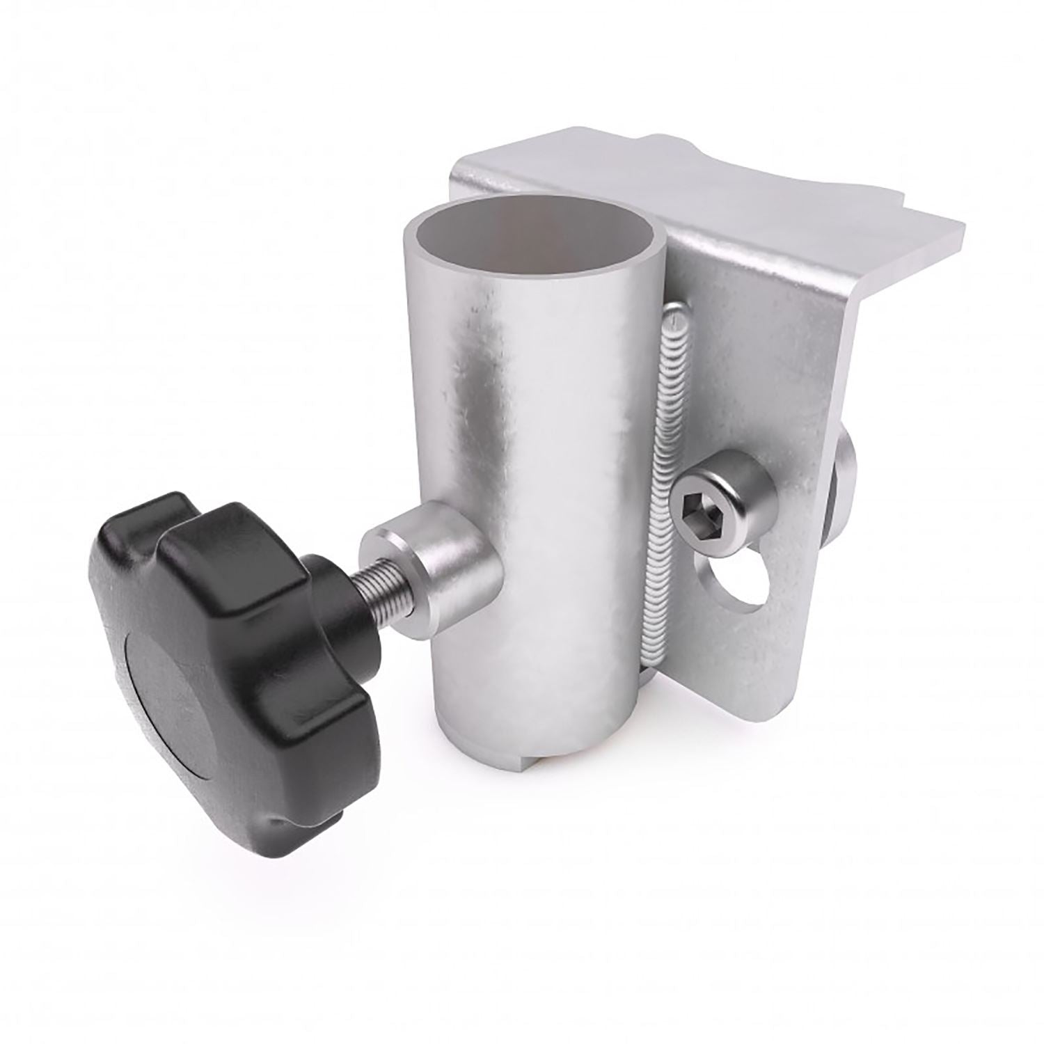 Une pince en acier galvanisé robuste à utiliser avec les mains courantes du système de scène modulaire en aluminium (853.940UK, vendu séparément). Le montage et le démontage sont faciles, il suffit de le fixer avec des boulons à clé Allen. Une molette de serrage permet le réglage en hauteur et le retrait de la main courante à la main.