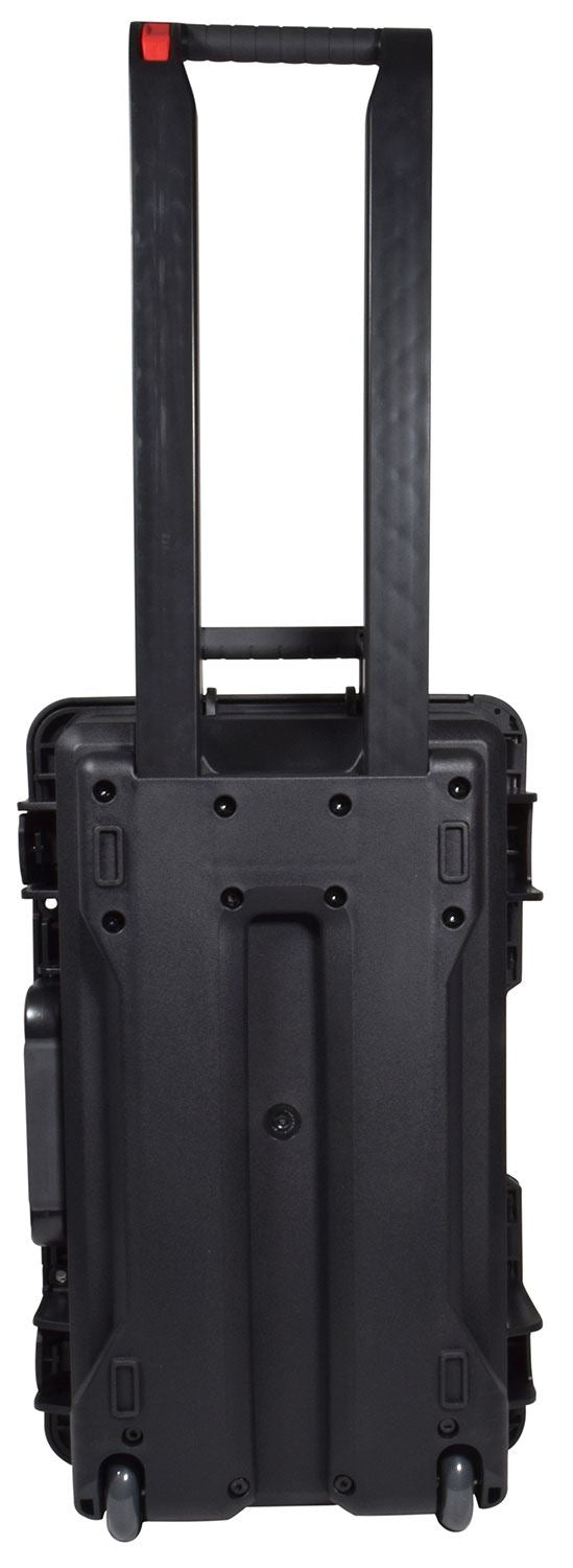 Une mallette d'équipement moulée robuste fabriquée à partir d'un matériau ABS haute densité et remplie de mousse plumeuse pour permettre la formation de découpes pour l'équipement stocké ou transporté. Entièrement scellé avec un joint intégré pour l'étanchéité, le boîtier est scellé à l'aide de 2 pinces à levier et peut être transporté par sa poignée pliable à prise souple. Équipé de roues et d'une poignée de chariot rétractable intégrée pour une portabilité facile.