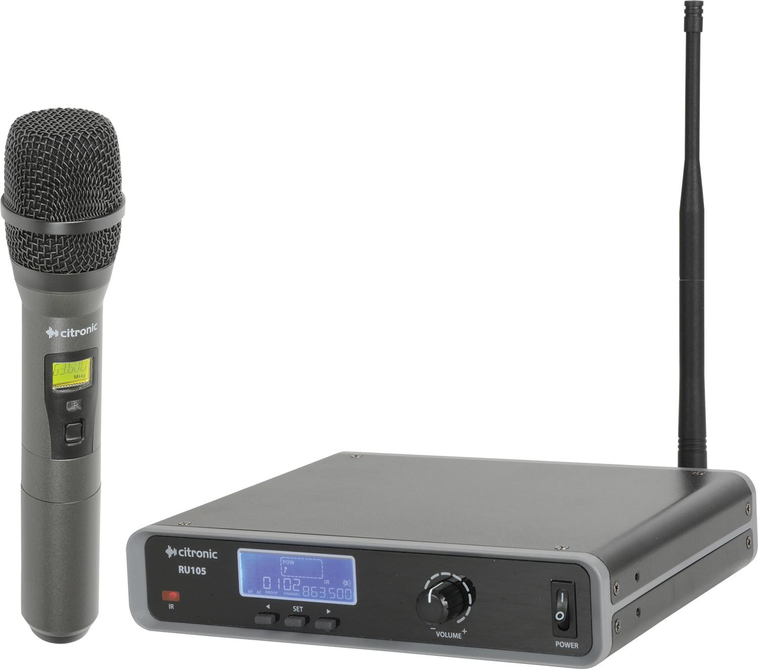 Système sans fil UHF réglable PLL monocanal avec émetteur portatif. Le récepteur est compatible avec les racks standard de 19" à l'aide des oreilles de rack incluses et des accessoires d'antenne de montage avant. La fréquence porteuse RF est sélectionnée sur le récepteur et synchronisée avec l'émetteur via infrarouge en appuyant simplement sur un bouton. Jusqu'à 4 RU105 les systèmes peuvent être exploités ensemble sur la bande sans licence de l’UE.