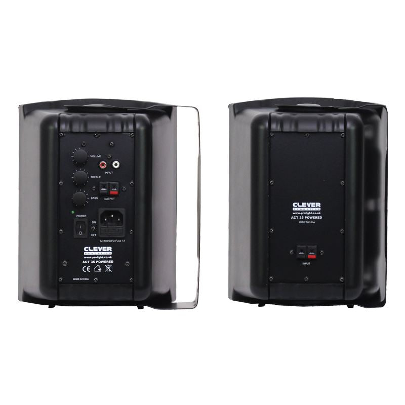 Système de haut-parleurs stéréo actifs comprenant un haut-parleur actif doté de commandes indépendantes de basses, d'aigus et de volume, ainsi qu'un satellite passif. À utiliser lorsqu'une renforcement sonore est requise pour les petites pièces ou pour les installations de projecteurs/écrans. Convient pour un montage autonome ou mural via le support de fixation pivotant réglable inclus, permettant une installation horizontale ou verticale.