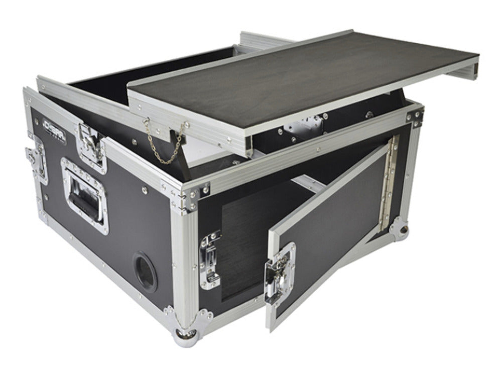 Crafted from heavy-duty 9mm scratch-resistant laminated plywood with riveted aluminum edging and reinforced metal corners, this rack is ready to travel. The rear access door and side panel cable holes simplify setup, while recessed handles and butterfly clasps ensure ease of transport. The integrated sliding laptop shelf adds ergonomic convenience to any workflow.