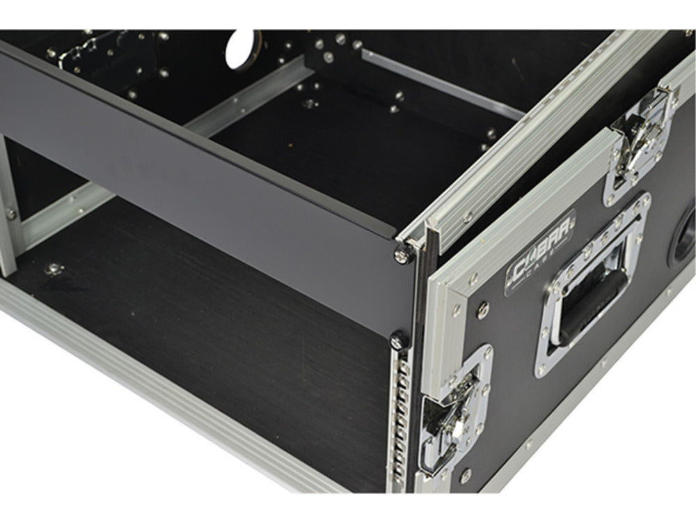 The Cobra 10U Slant/6U Vertical Rack with Sliding Laptop Shelf is a professional-grade combo rack case built for durability, flexibility, and functionality. Designed to accommodate a 10U slanted mixer up top and 6U vertical rack space below (4U usable for deep gear), it also features a smooth sliding shelf perfect for your laptop or controller. Whether for live sound, studio work, or mobile DJ setups, this case delivers a rugged and road-ready solution.