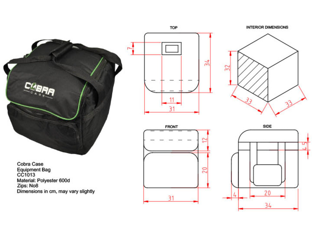 The COBRA 330 × 330 × 355 mm Padded Equipment Bag is a versatile and robust solution designed to protect AV gear, lighting accessories, small tools, and electronic equipment. Built with durable nylon and featuring 10 mm internal foam padding, it shields contents from bumps, scratches, and dust during transit or storage. A heavy-duty full-length zipper ensures secure containment, while reinforced carry handles provide comfortable, reliable transport. Its clean, compact design and efficient protective features make it a valuable accessory for professionals and enthusiasts alike.