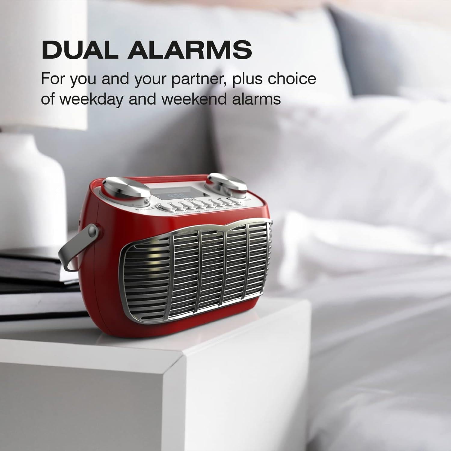 DOUBLE RÉVEIL AVEC MINUTERIE DE SOMMEIL : La radio Detroit est une excellente horloge de chevet avec un choix d'alarmes en semaine et en week-end afin que vous puissiez vous réveiller à des heures différentes. Les horloges sont continuellement mises à jour via un signal radio. Ainsi, même lorsque les horloges changent, vous pouvez être sûr de vous réveiller à l'heure.